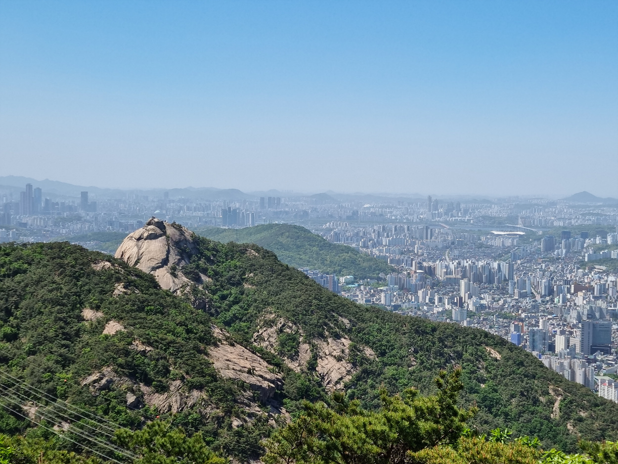 그 뒤로는 인왕산과 안산, 그리고 남산과 더 멀리는 관악산 자락이 눈에 들어 온다,