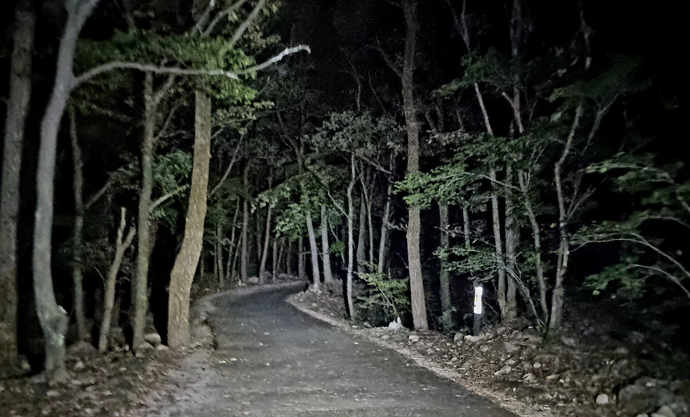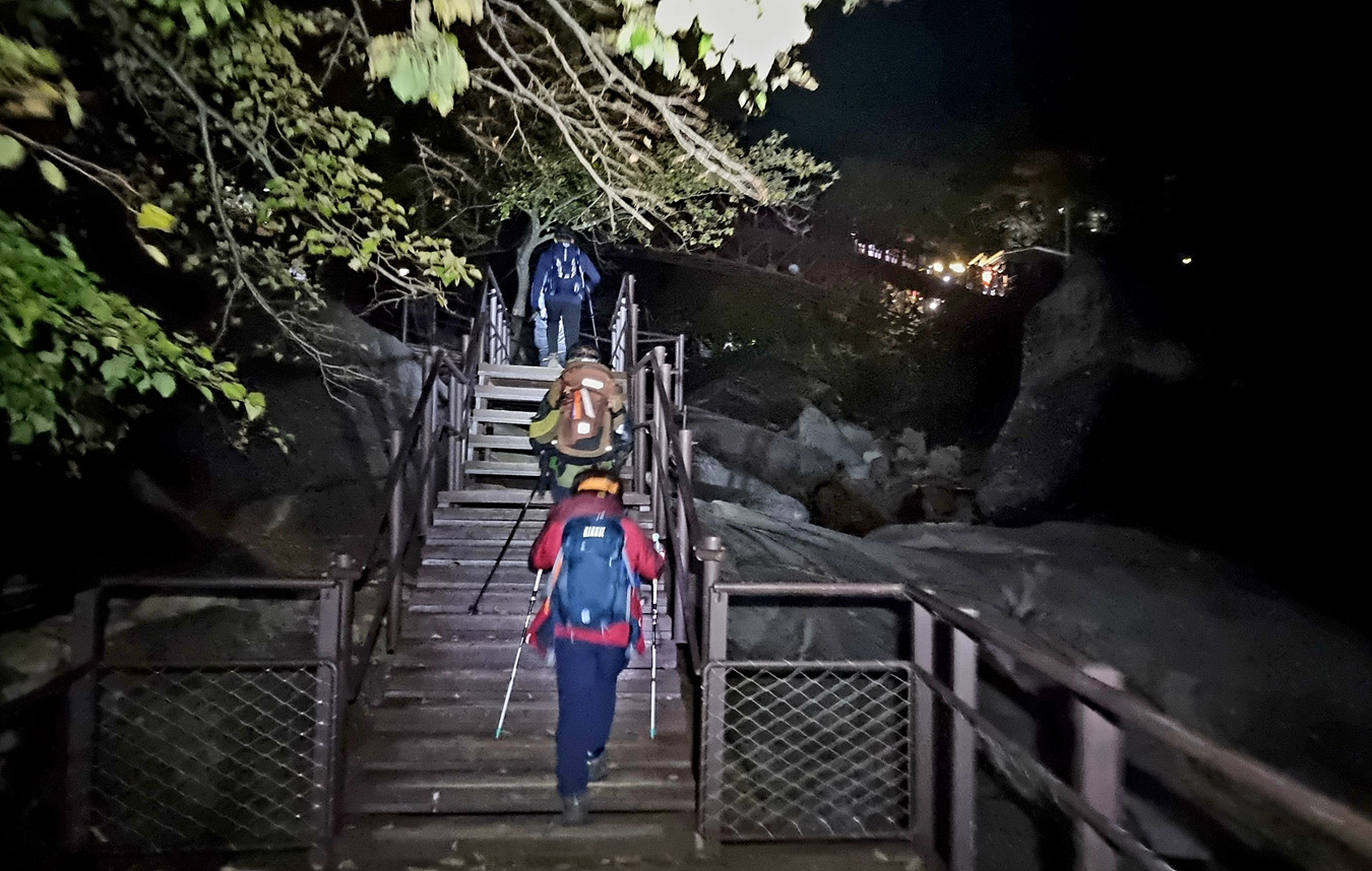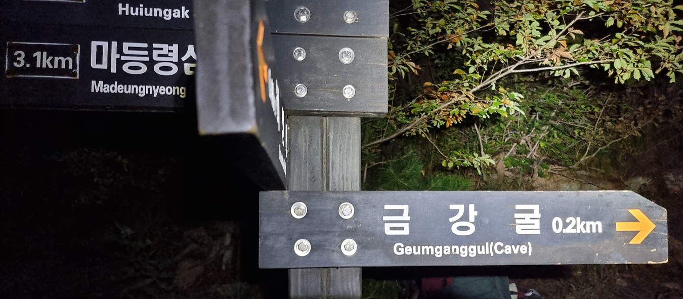 이 길은 비선대에서 올려다 보이는(밤이라 보이지는 않지만)세 암봉 중 장군봉을 우회하는 길인데