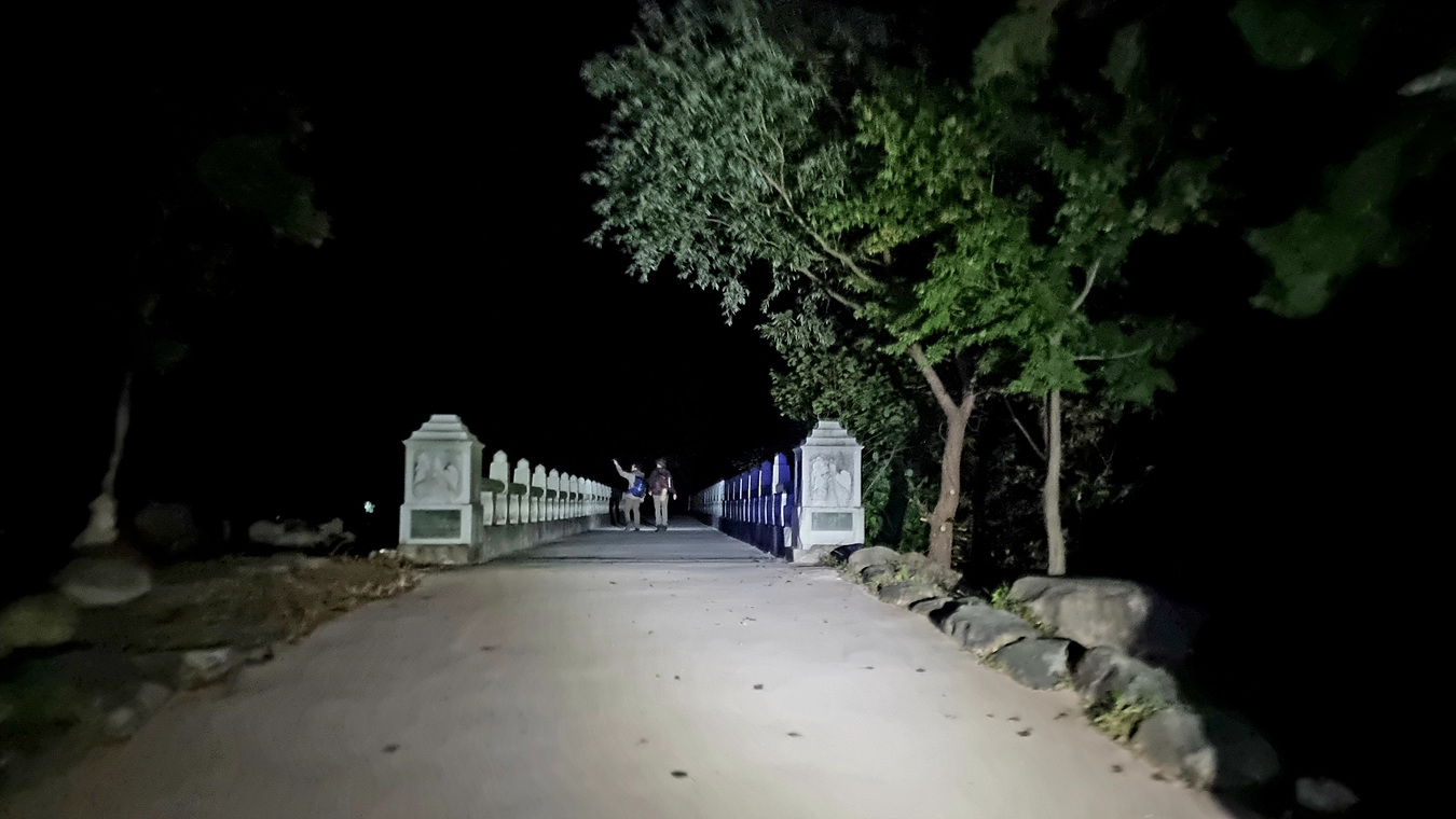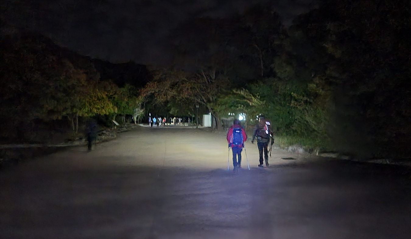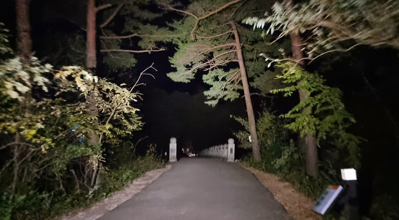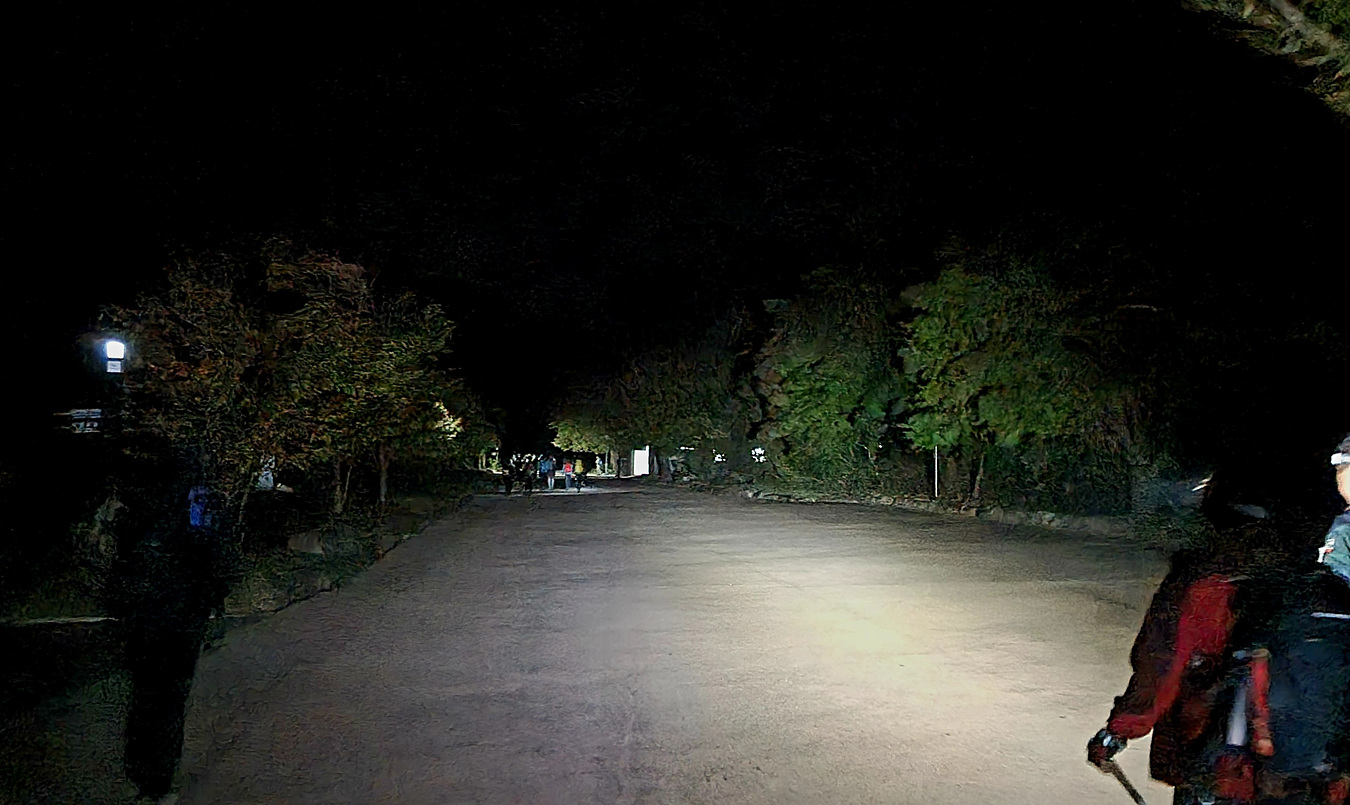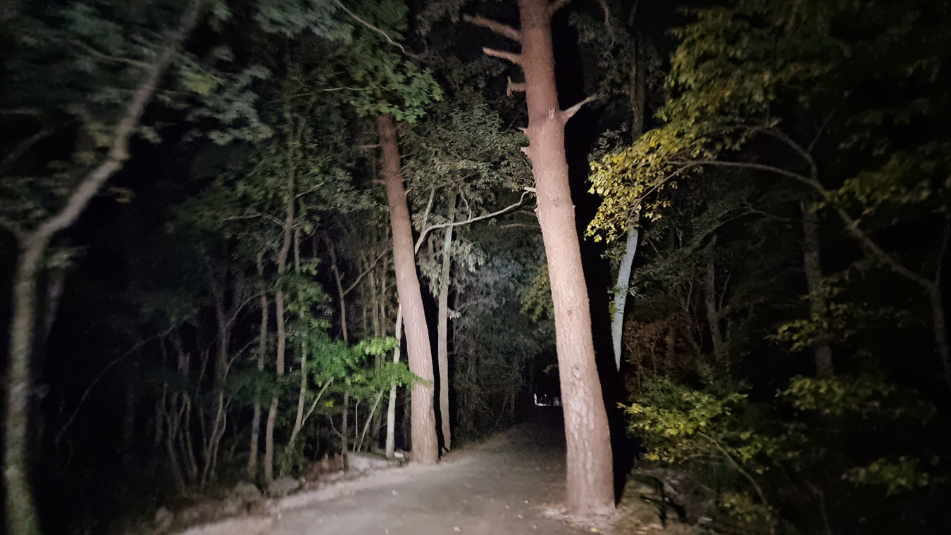 깜깜한 밤이지만 헤드랜튼으로 길을 밝히고 화장실도 지나고 자유용사의비도 지나서