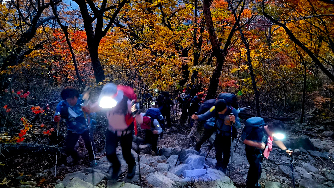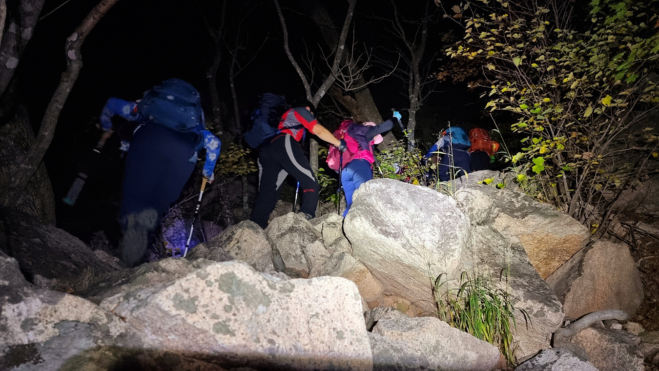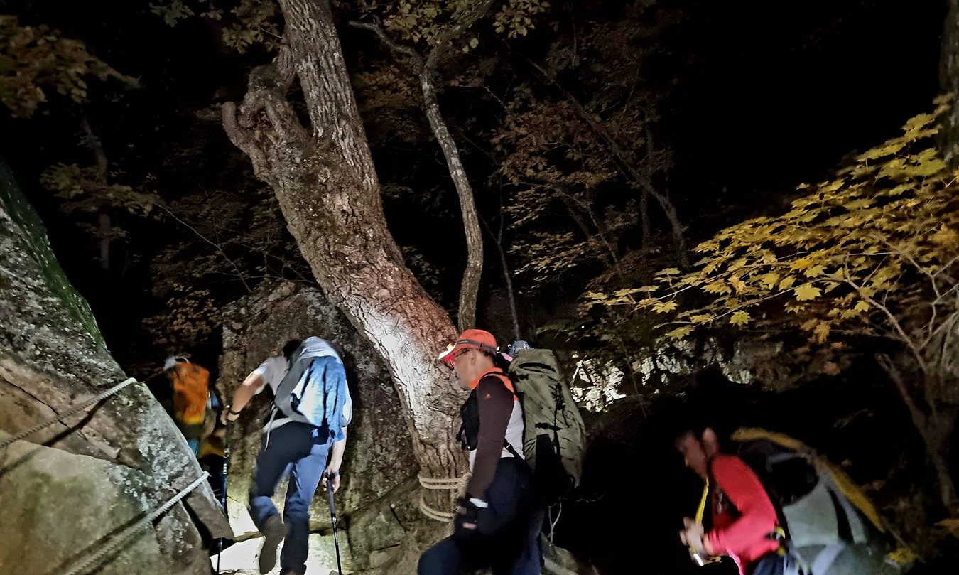 오로지 헤드랜튼 하나로 길을 밝히고 올라가는 길