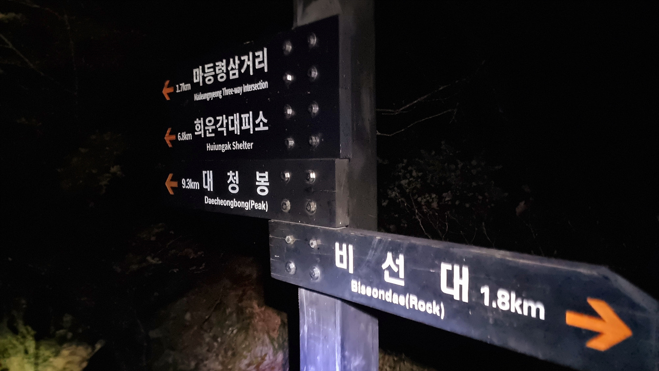 그래도 이 길은 어두운 밤에 올라가는게 더 쉬운? 길이다, 이마에 닫는 경사가 밤에는 잘 보이지 않기 때문이다, 눈에 보이면 더 힘들고 보이지 않어면 그만큼 심적으로는 부담이 덜하기 때문이 아닐까?