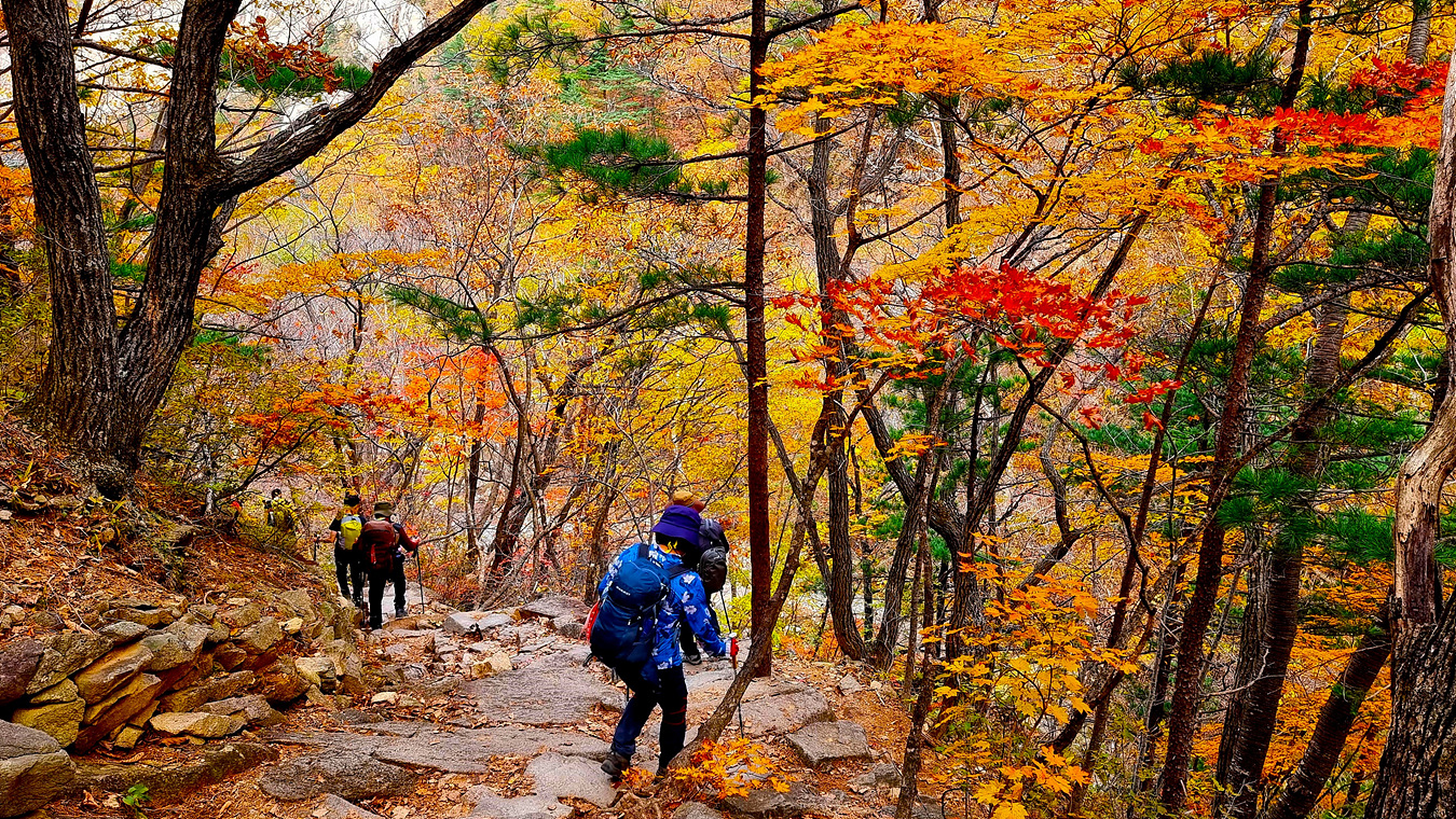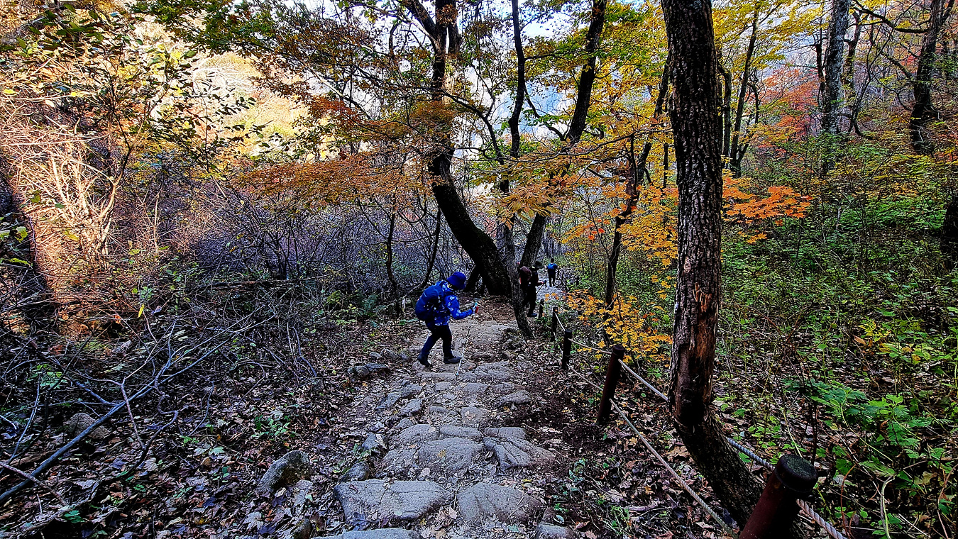 아무리 단풍이 고와도 모두들 지쳣는지? 아무 말없이 길만 보고 내려 간다,