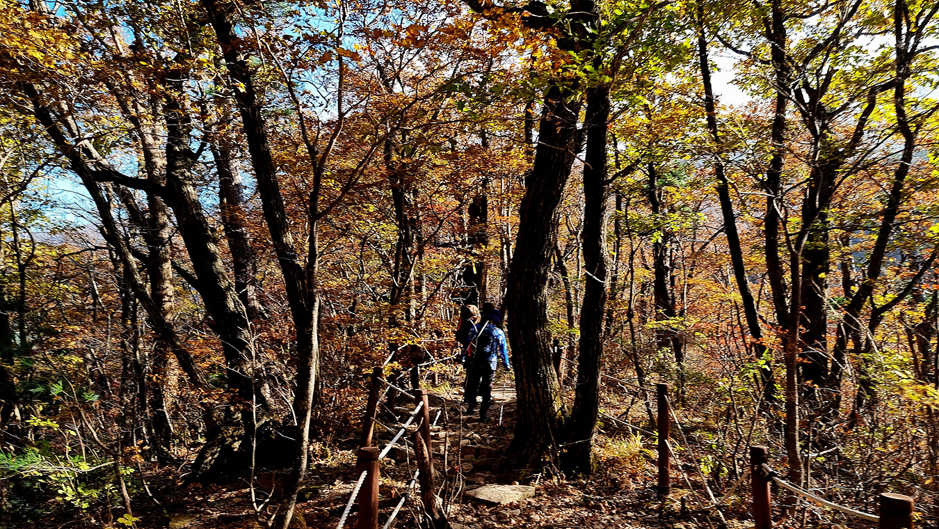 샘터에서 잠시 올라가서 평평한 길을 따라가면
