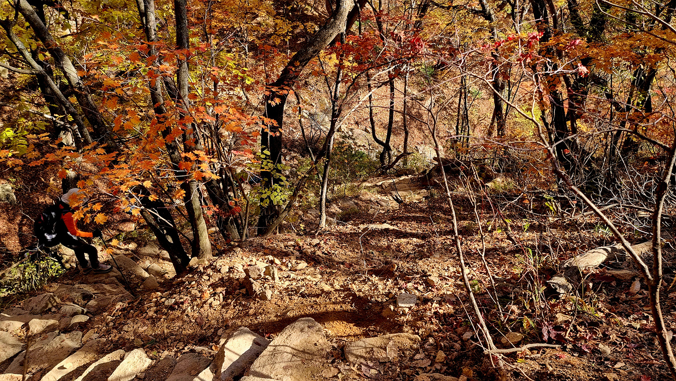 두 곳의 암릉길을 내려 왔지만 아직도 내려가는 길은 조금 급하다,