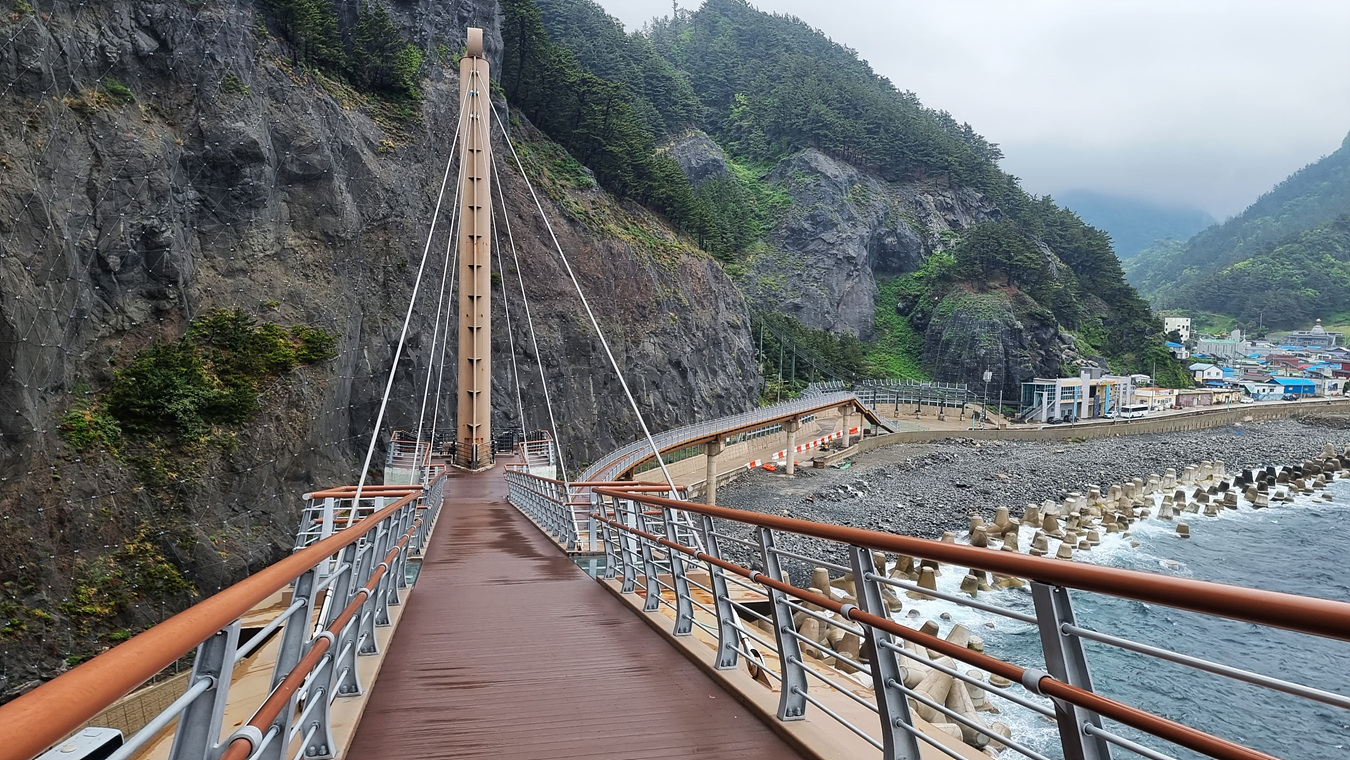 고가 다리에서 내려와 거대한 암반아래 울릉도 황토구미를 만난다,