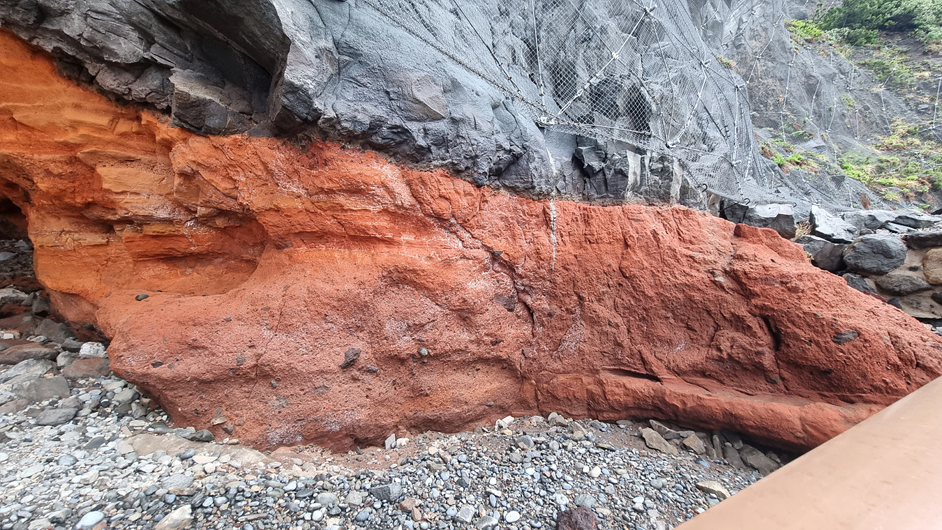황토구미가 있는 바다가에는 예전에 고가 다리가 놓여지기 전에 오르내리던 잔도가 있는게 보인다, 그래서 이곳의 조면암과 집괴암의 분포지는 소중한 자산인가 보다,