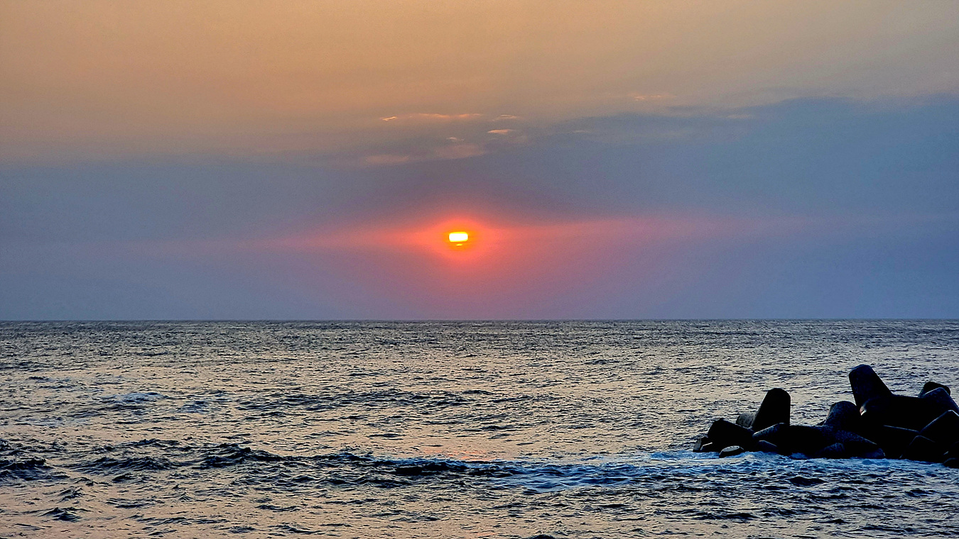 저동항에서 관광버스로 숙소가 있는 북면 천부리로 돌아 와 울릉도 첫 일몰을 본다,