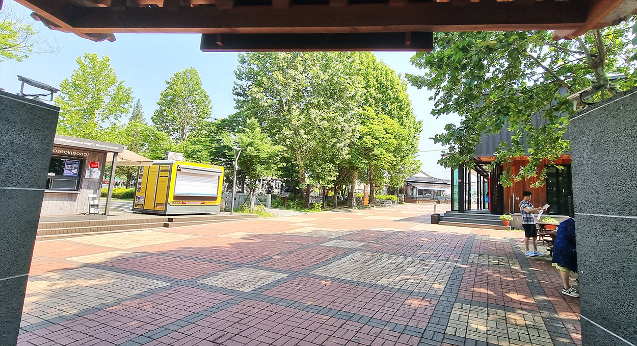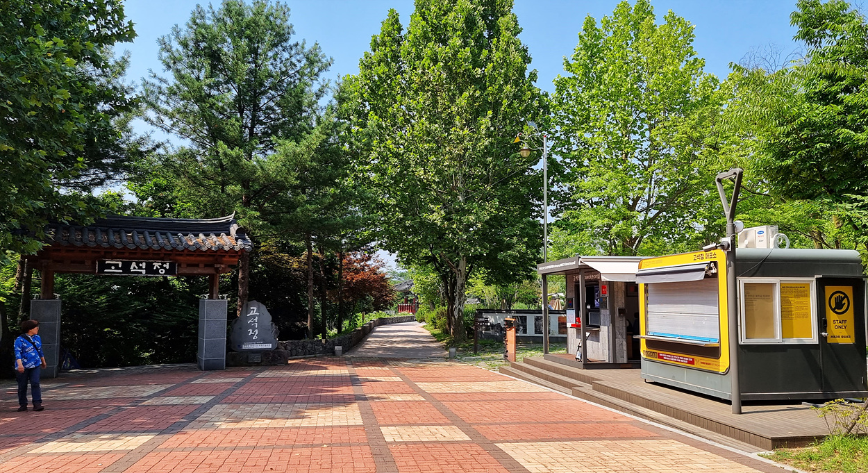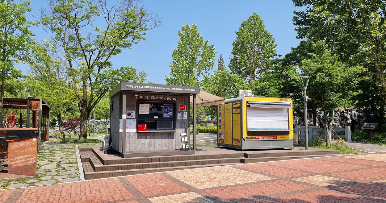 고석정이 있는 곳에서 올라가는 계단으로 위로 올라가면 고석정 광장이다, 광장 왼쪽에 고석정관광안내소 부스가 있는데
