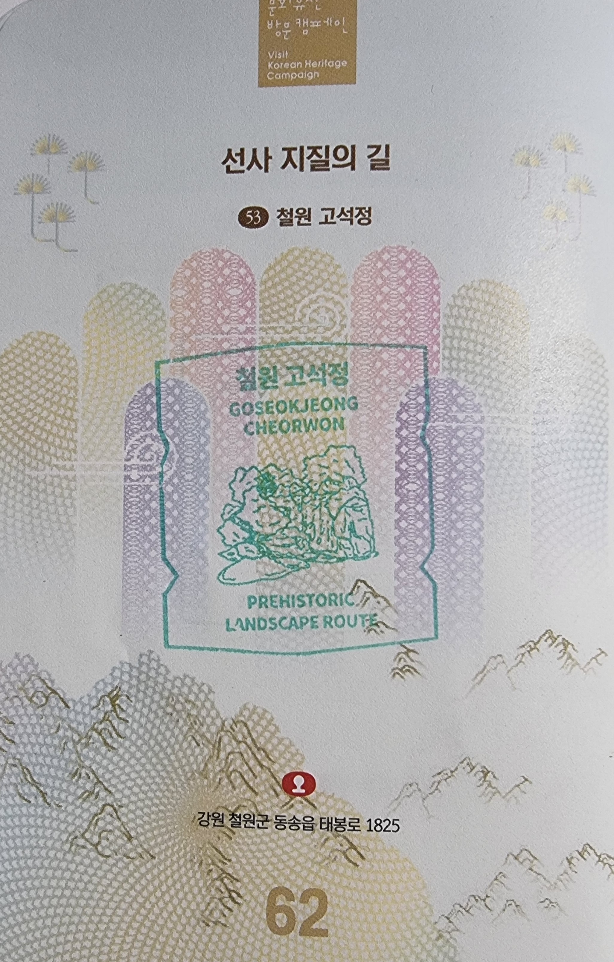 문화유산방문자여권 62페이지 53번째칸에 고석정 방문 여권 도장을찍는다,