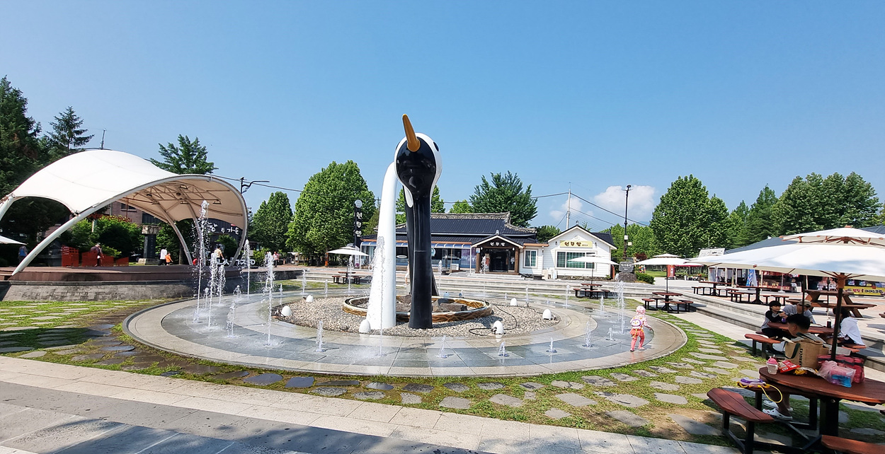 고석정입구 광장 분수대도 가동 할 만큼 더운날