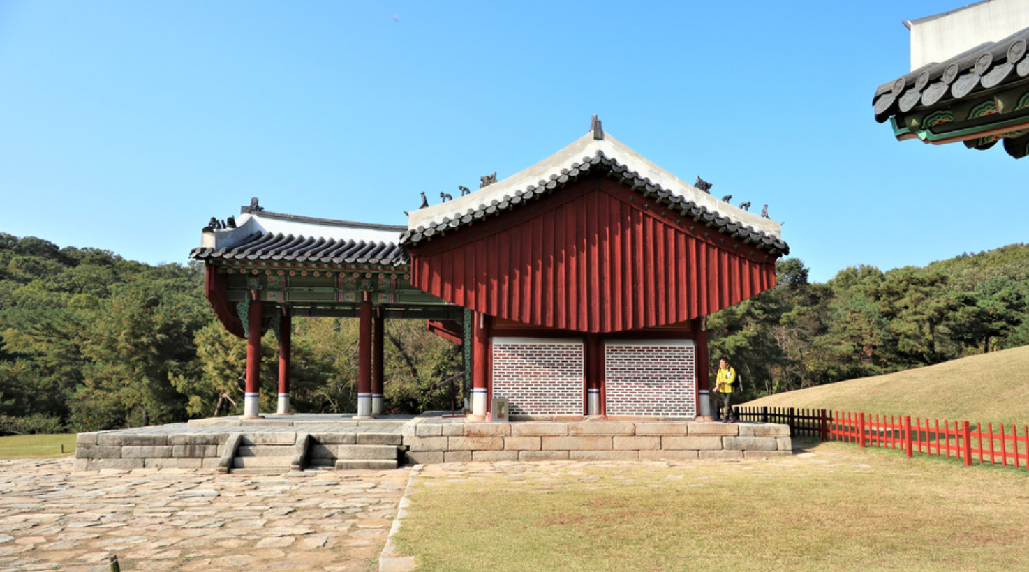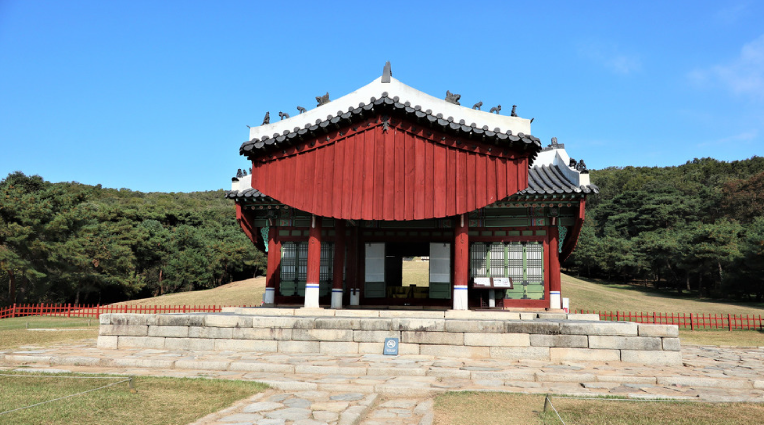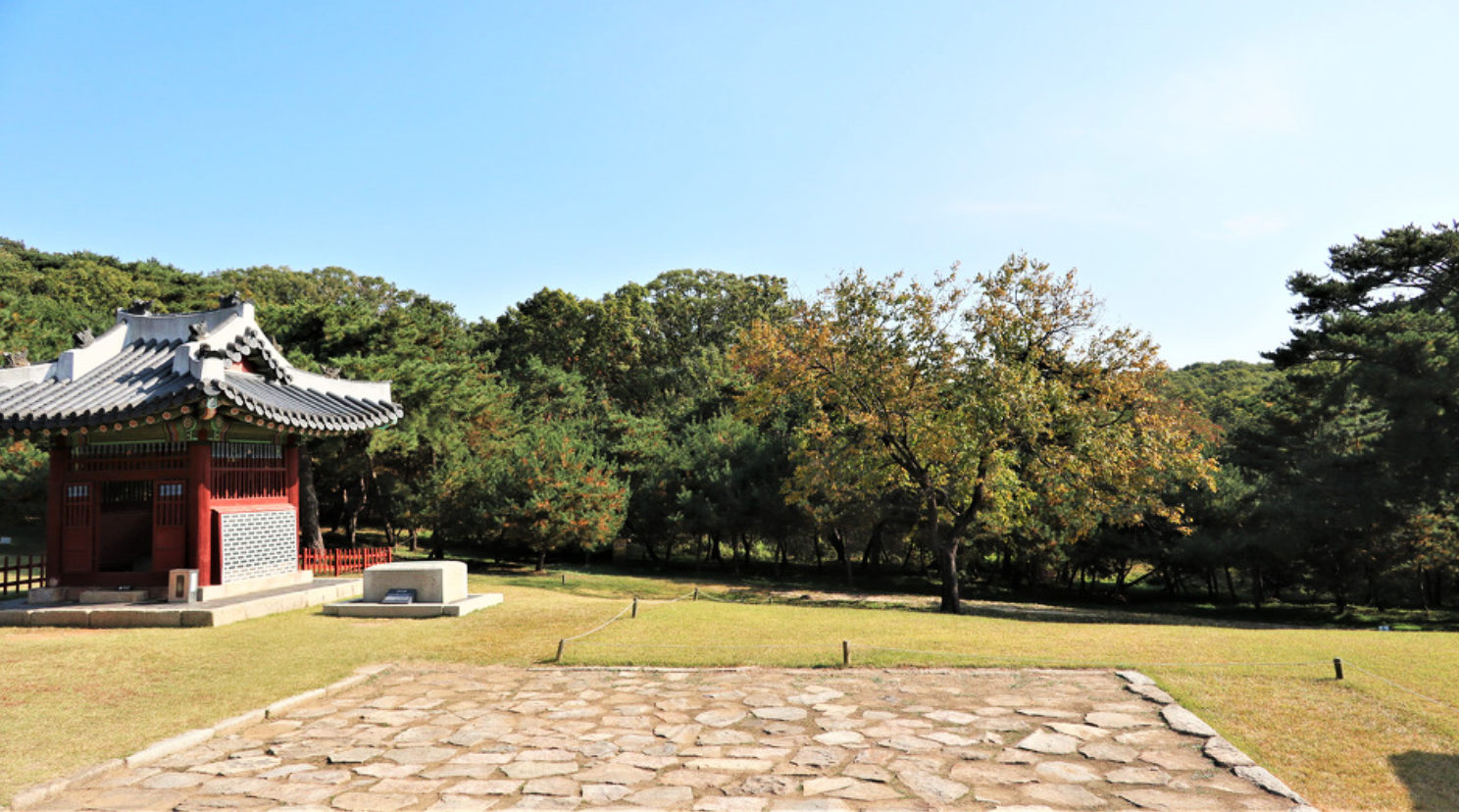 정자각이다, 조선 왕릉의 정자각은 릉에서 제사지낼 때 사용하는 중심 건물로 그 모양이 丁 자와 같아 정자각(丁字閣)이라 불렀다. 정자각은 봉분 아래에 있으며, 정자각 앞으로는 박석을 깐 삼도(三途)가 있고 삼도 맨 앞 입구에는 홍살문이 놓인다.