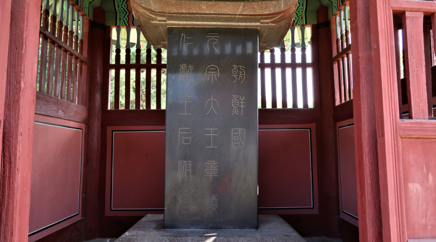 비석에는 朝鮮國(조선국) 元宗大王章陵(원종대왕장릉), 仁獻王后부左(인헌왕후부좌), 라고 새겨저 있다,