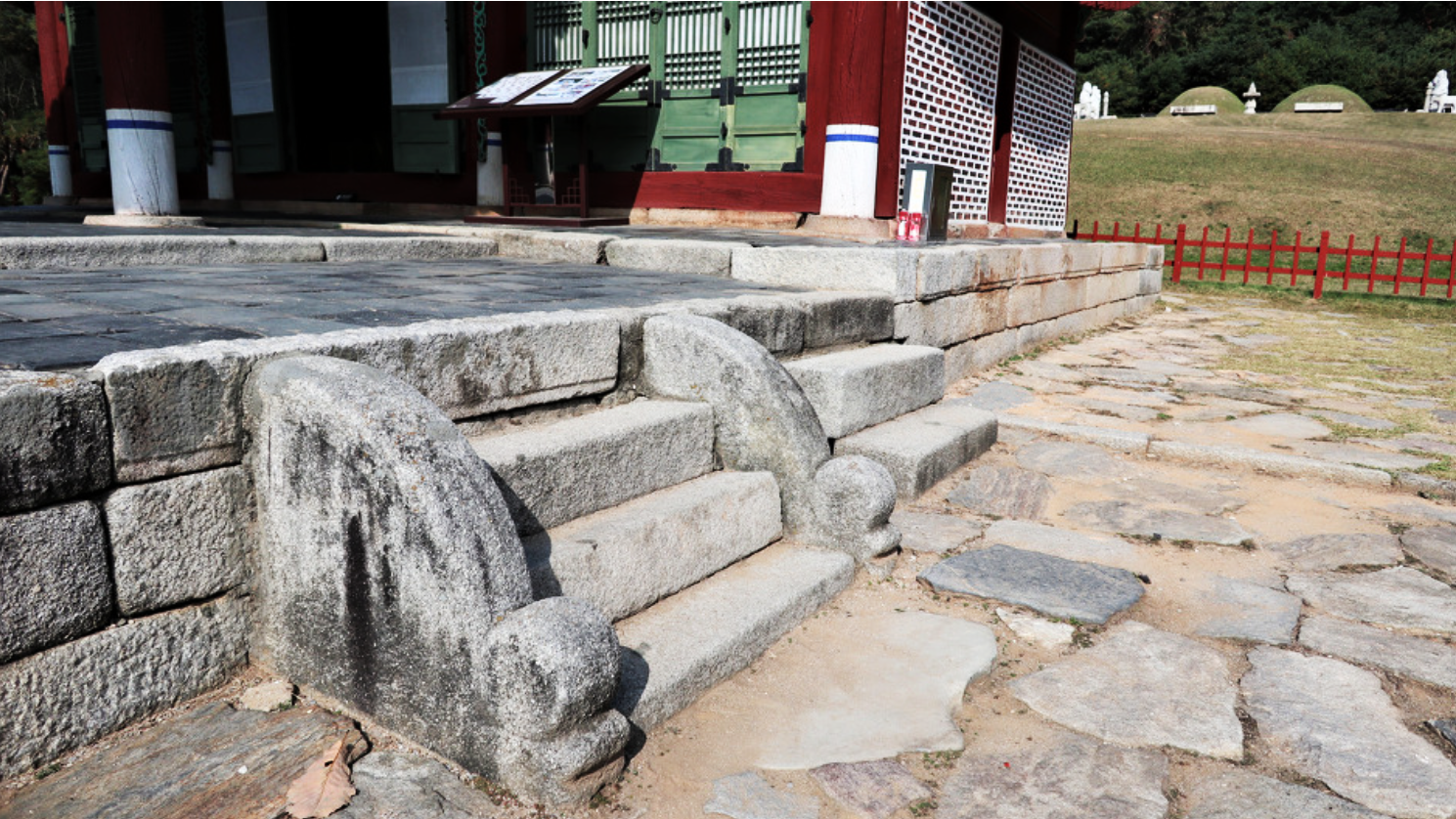 대 와 기단은 화강석 장대석을 쌓아 구성했고 계단은 월대의 양 측면에 설치되어 있다. 동쪽 계단은 두 곳으로 나뉘며, 두 계단 중에 하나는 향로계(香路階, 운계)로 측면에 구름문양을 새긴 장식이 있는데, (향로 = 신도)라고 부르는 향을 모시고 가는 길과 이어진다.
