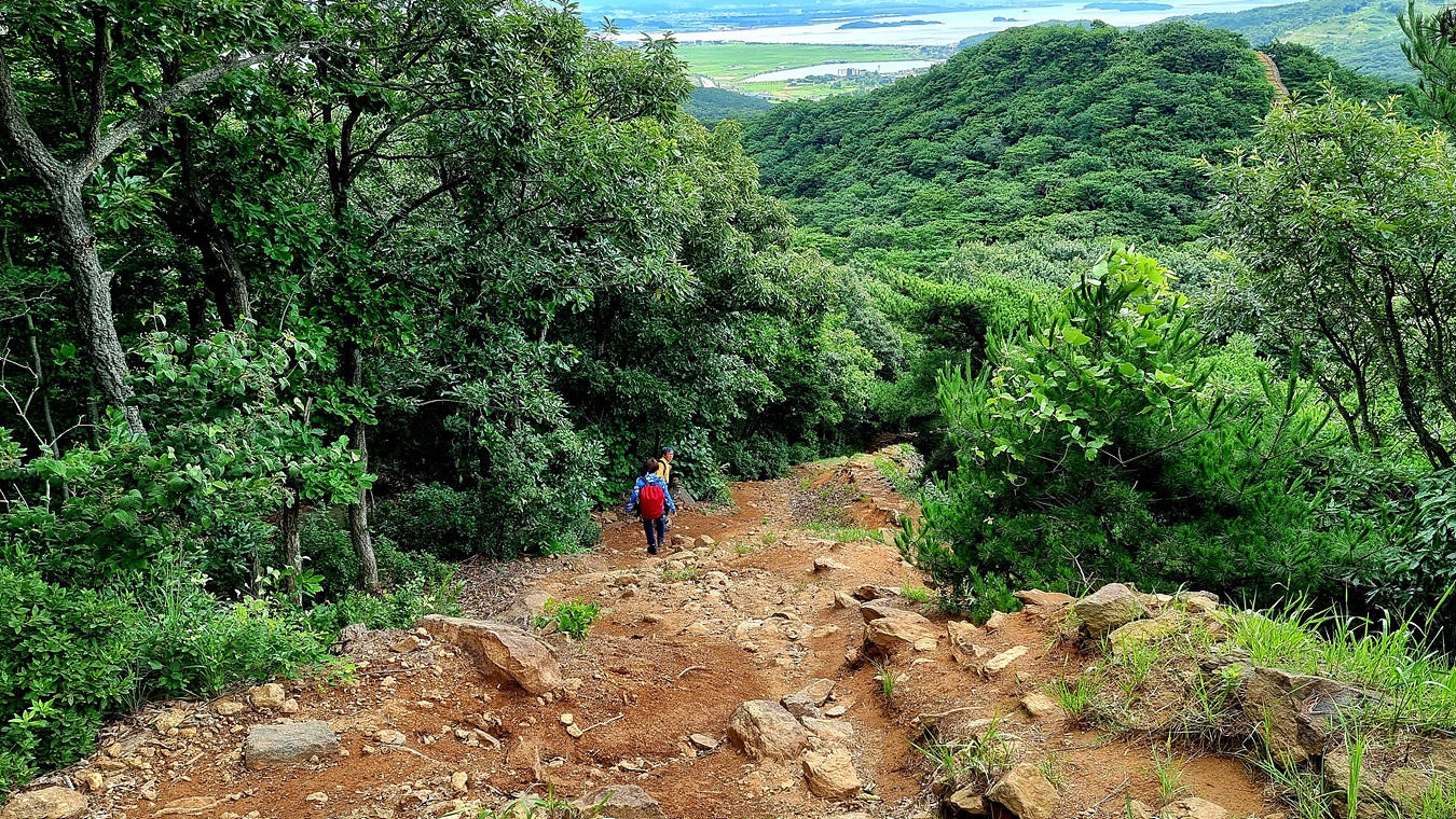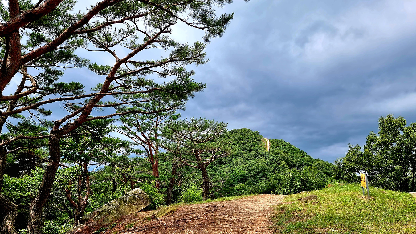 정족산은 5개의 산봉우리로 이어진다, 남문에서 동문으로 가는 첫번째 산봉우리로 올라왔다,