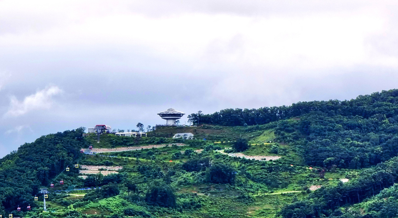 조금 가깝게 보니 놀이공원 곤도라 같은 시설이 있다, 나중에 확인 했더니 저곳은 곤도라를 타고 올라가 보는 회전전망대로, 1시간에 한번 360도 회전을하는 탐앤탐스카페가 영업중인 스카이 라운지라고 했다,