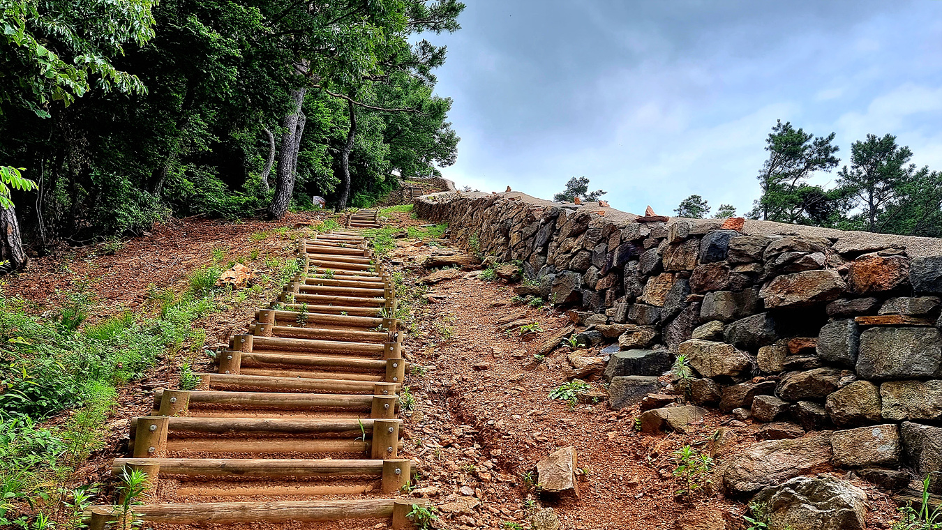 잠시 성곽 미복원 구간을 내려가니 내림길 끝에서 부터는 관리가 잘되여 있다,