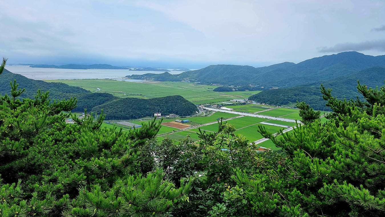 정상에서 보이는 마니산앞 평야를 따라