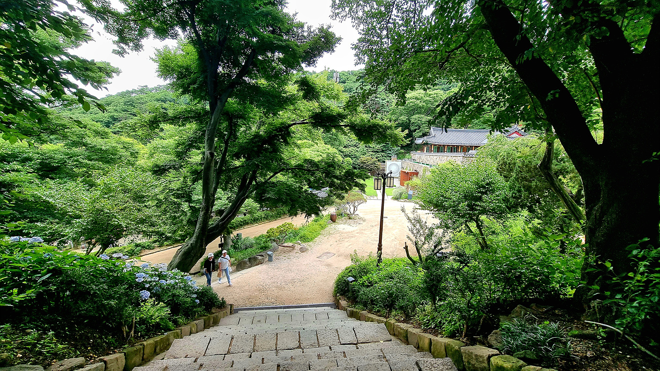 흐트러 지게 만개한 수국과 함께 어우려지는 대조루가 멋스럽기만 하다,
