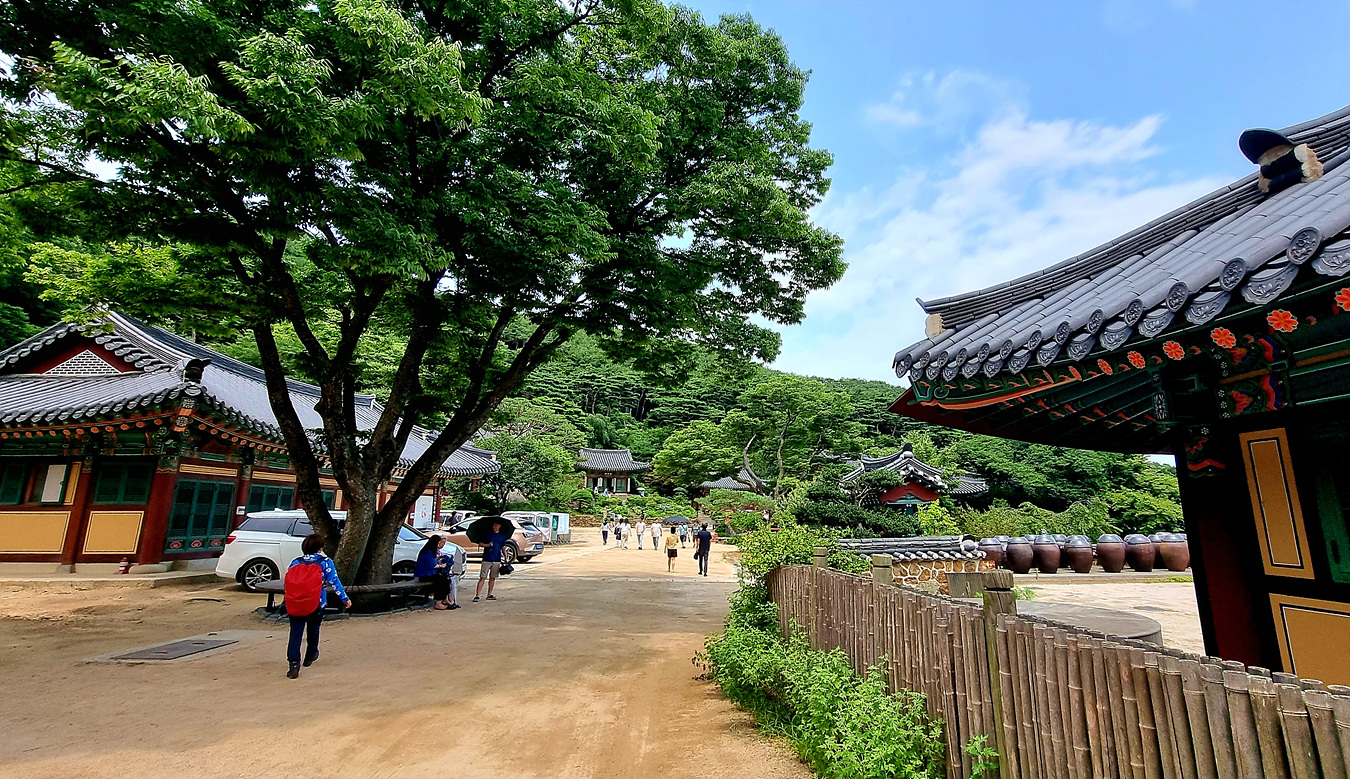 무설전 앞 마당 장독이 있여 울터리 넘어로 들여다보니