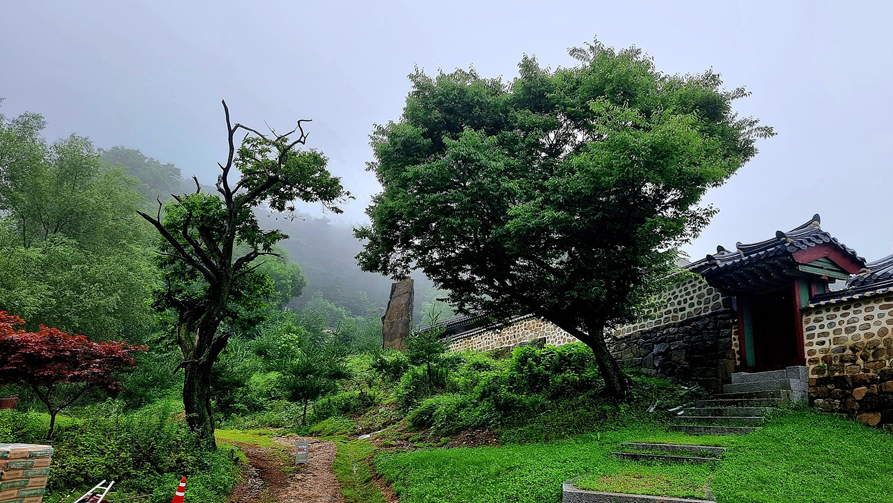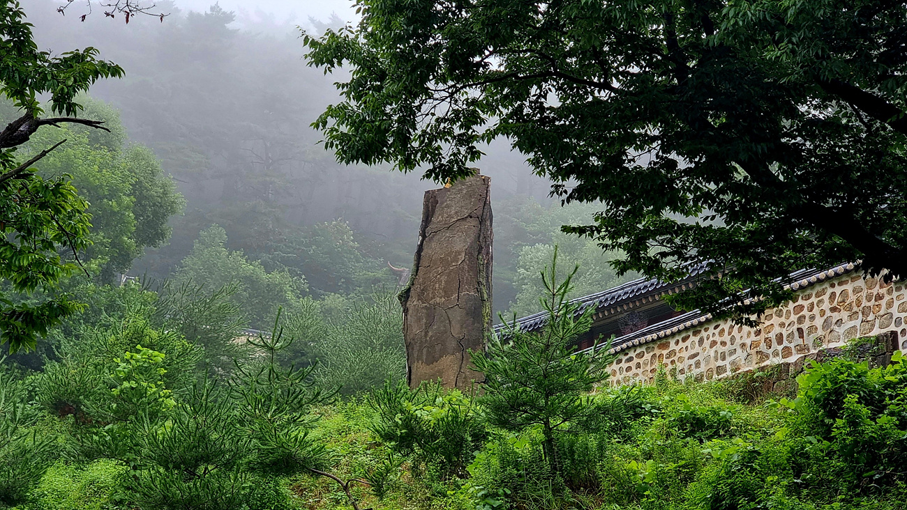 행궁 담장 옆에 있는 이 대형 선돌은 무슨 용도 였는지? 비가 내리는 날이라 풀이 젖어 있어 가깝게 가보는 것을 포기하고 먼 발치에서 보는 것 만으로는 알 수 없었다,,