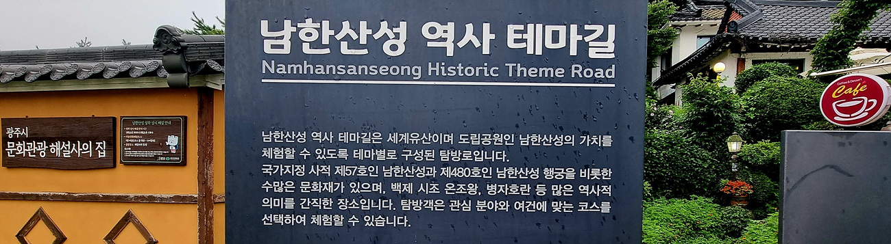 종각을 지나면 광주시 문화관광해설사의 집 이있다, 여기가 남한산성관광안내소다, 이곳에 문화유산투어 여권스템프가 있다고 해서 찾아보니 문은 닫겨있다, 관광안내소 앞에는 남한산성 역사테마길 안내도 있는데