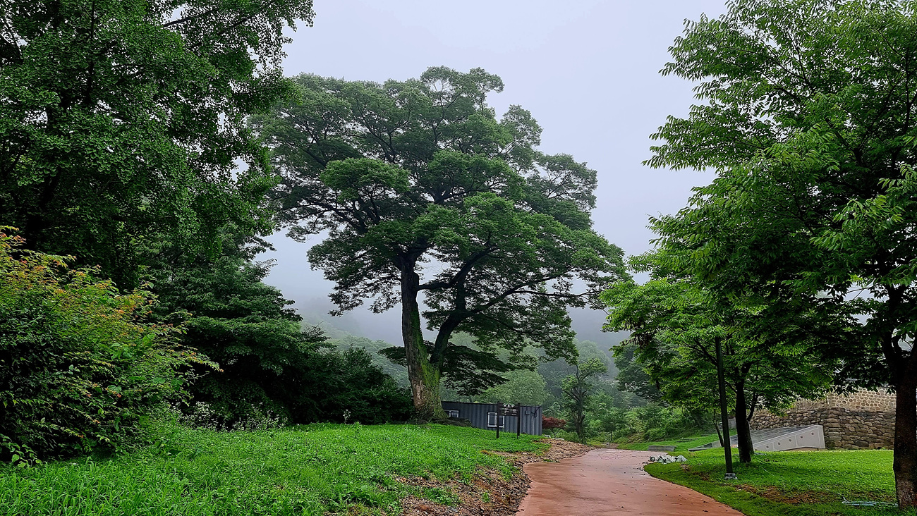 행궁 왼쪽으로 올라가다 보니 거대한 나무 한그루가 있는데 이 나무는 410년이나 된 느티나무다, 수령 410년이면 병자호란때로 인조가 이곳에 있었을때 쯤 된다,