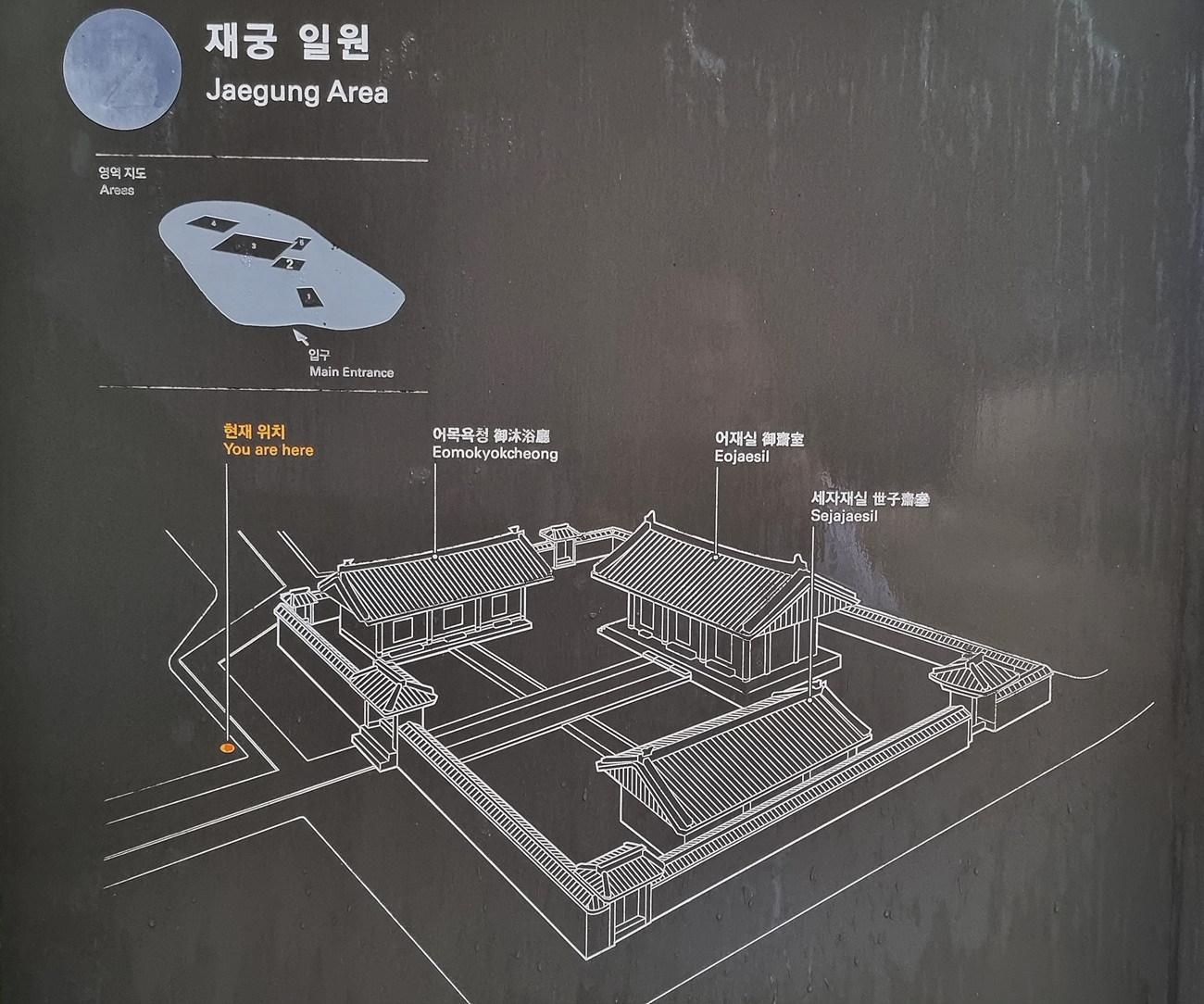 뜰을 중심으로 북쪽에 御齋室(어재실), 서쪽에 御沐浴廳(어목욕청) 과
