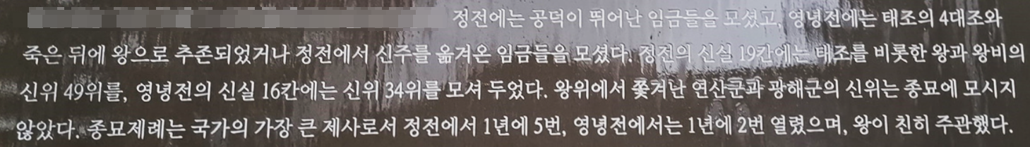 19위의 왕과 30위의 왕후 신주를 모셔놓고 있는 종묘 2023, 07, 24 본문