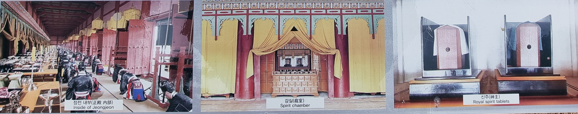 정전에는 옆으로 길게 늘어진 19개의 방에 임금과 왕비의 신위가 모셔져 있다. 아무런 장식을 하지 않은 단순한 구조이지만 최고의 격식과 검소함을 갖추었다