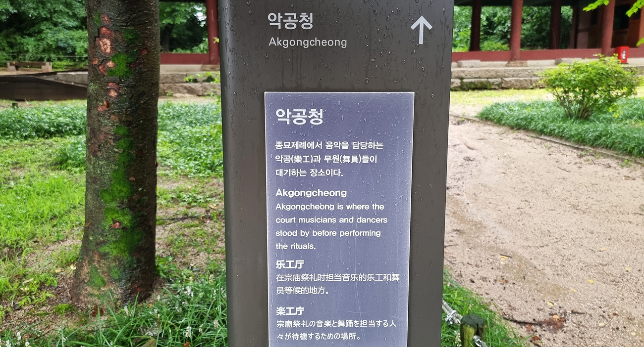 악공청은 종묘제례에서 음악을 담당하는 악공과 무원들이 대기하는 장소다