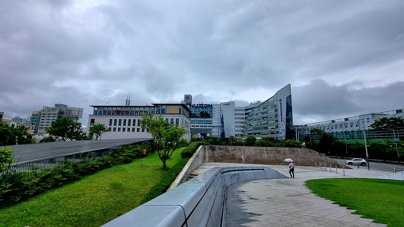 디자인프라자 건물 위쪽으로 올라가는 길은 후면에 있는데