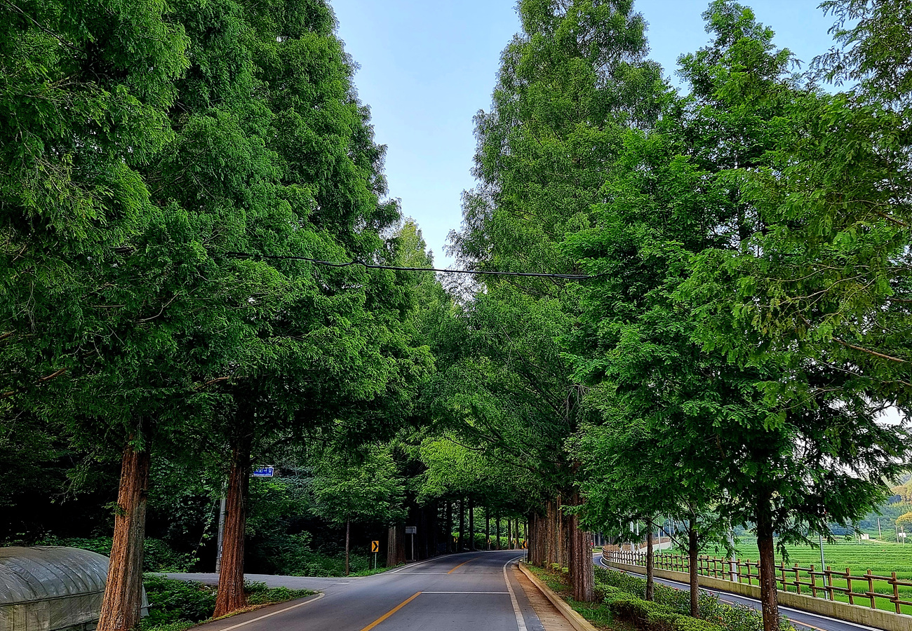 삼복권역 커뮤니티센터로 가는 길은 여기서 약 50km로 1시간 정도가 걸린다, 가는길 2차선 도로변에 심어진 메타쉐콰이어 가로수길이 환상적인 전경이다, 도로폭이 좁아서 주차 할 곳이 없어 지나가면서 눈으로만 보아야 하는게 아쉬웠지만 주차장 시설이 없어니 다시 가볼 수도 없고