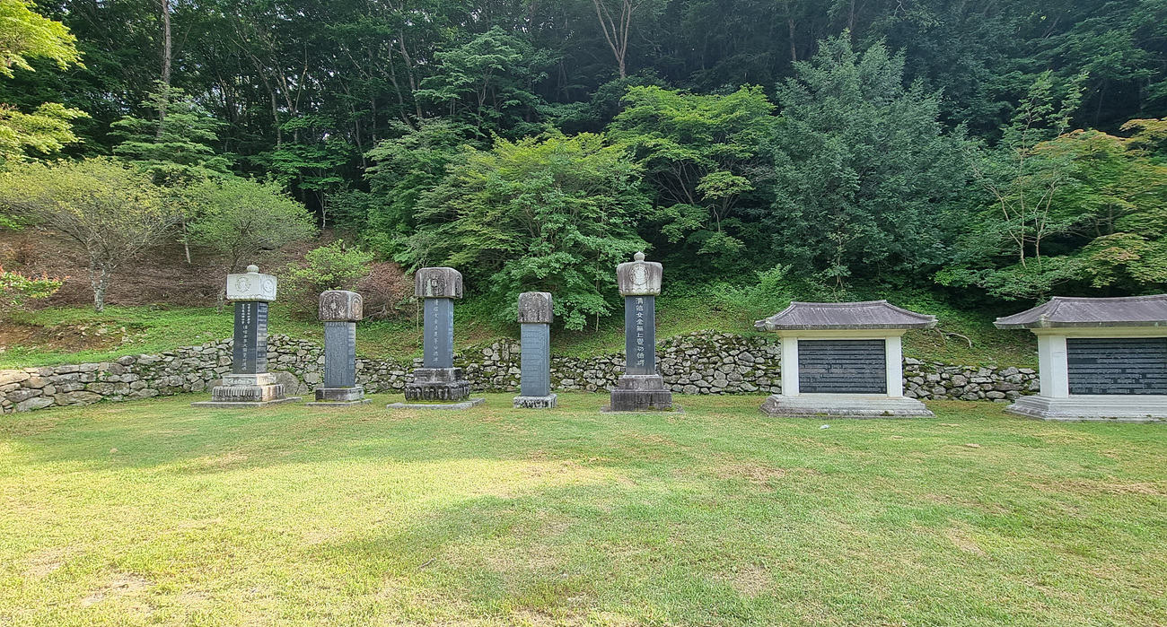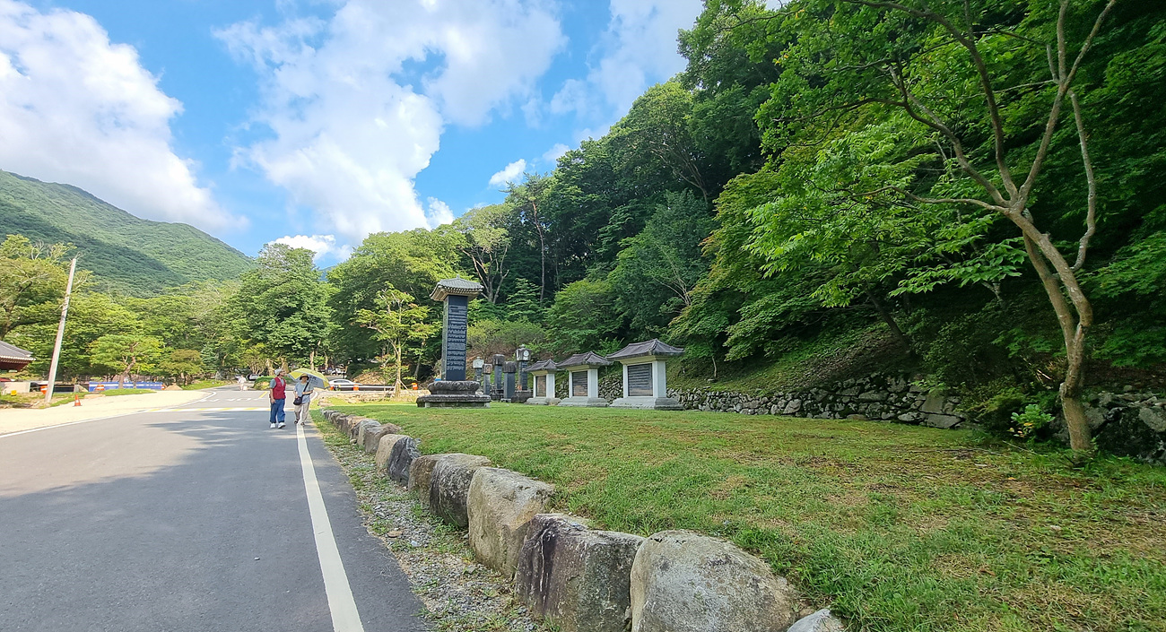 아스팔트로 잘 다듬어진 도로지만 들어가는 오른쪽에 비석군이 있다,