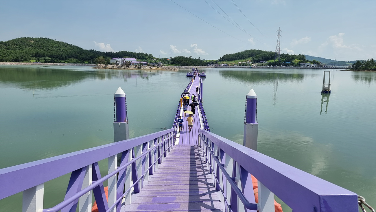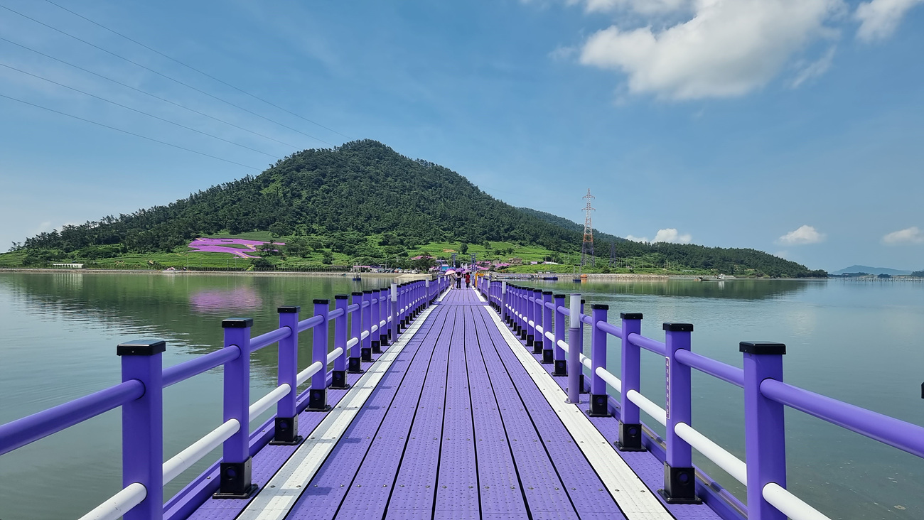 퍼플섬으로 들어가는 다리는 첫발부터 모두 보라색이다, '1004섬 신안군은 가고 싶은 섬 가꾸기 사업을 마중물로 삼아 컬러마케팅을 앞세운 반월, 박지도의 지속적인 개발로 관광객들을 사로잡는 섬으로 탈바꿈 시켰다.