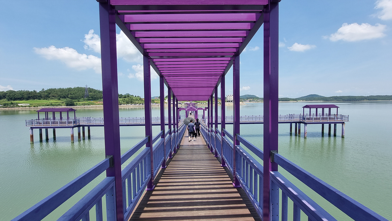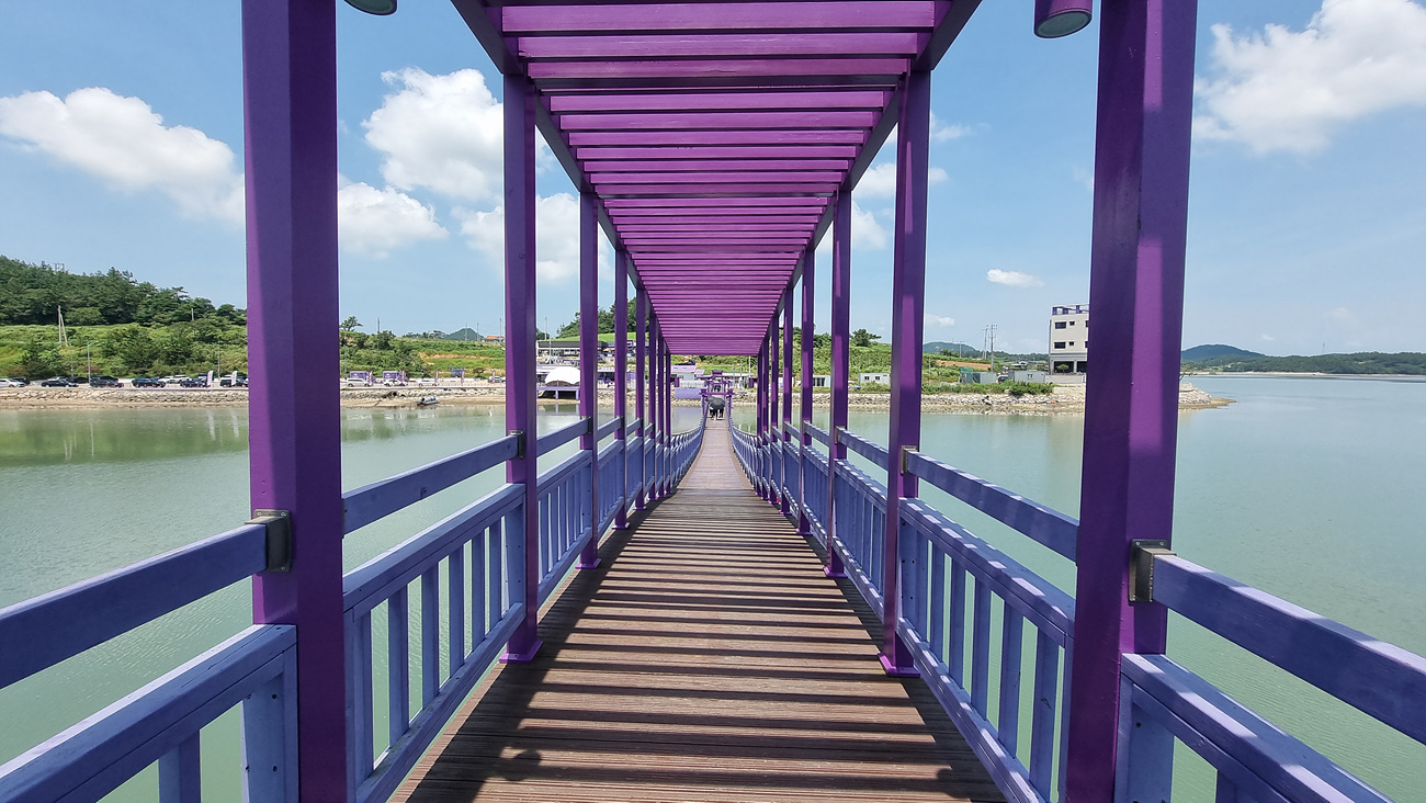 다리 바닥도 난간도 모두 보랏빛으로 물든 다리는 맞지만 여기서 드는 의문은 왜? 무슨 이유로 퍼플교, 퍼플섬이라고 했을까? 우리말 이름인 보라섬이라면 되었을 것을 궂이 퍼플섬이라는 영어 이름을 붙였는지? 쉽게 납득이 안된다,