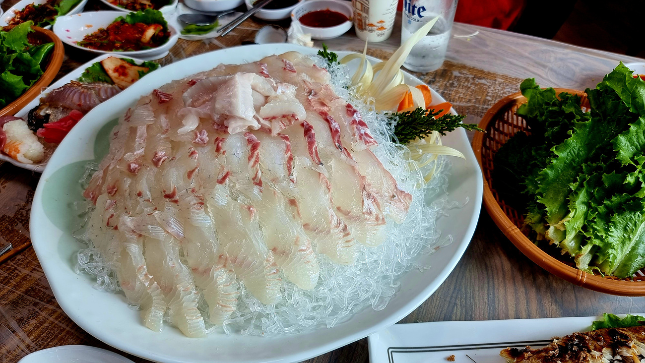 역시 목포는 다른점이 있다, 사진은 다 찍지 못했지만 믿 반찬이 계속해서 나오고 회 맛도 존득하니 싱싱하다, 남도 음식 남도음식 하는 이유를 오늘 제대로 느낀 날이다,