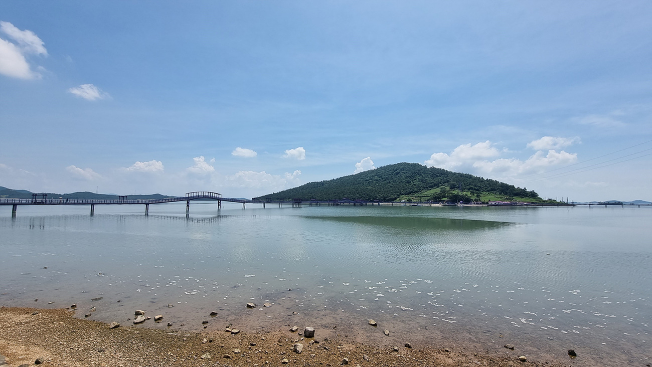 반월도로 들어올때 보다 더 긴 다리를 건너가야한다, 문제는 여름철이라 그늘이 없어니 더위를 견뎌야 하는 데 이것도 만만치 않다,