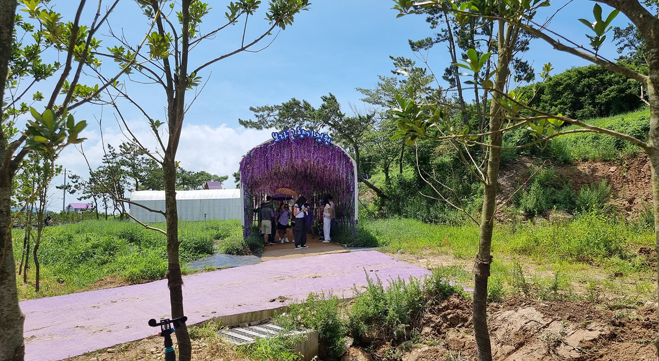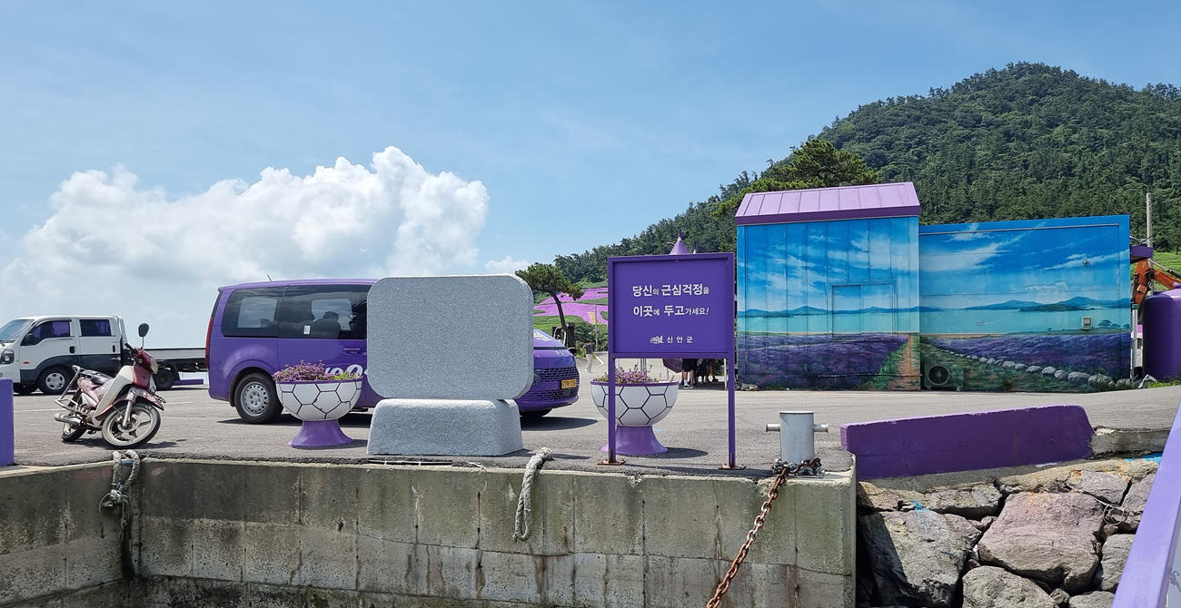 다리도, 지붕도, 차도, 도로도, 벽도, 꽃도 온통 보라색인 섬마을이 푸른 바다와 어우러지는 모습을 그려보면 얼마나 아름다울까, 그런 곳이 퍼플섬이라는 정보로 이곳에 왔다
