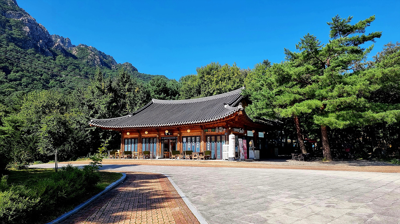 금강소나무앞 절 건물 처름 보이는 한옥이 있는데 이 건물은 절간이 아니라 음식점이다, 이 건물 뒤에도 음식점이 있고 들어가는 길 오른쪽에도 여러곳의 음식점이 있는데 메뉴는 전 부침과 황태국, 그리고 산채비빔밥으로 통일 되어있다, 신흥사 수익 사업장(위탁운영 체제)이라서 그런가 보다,