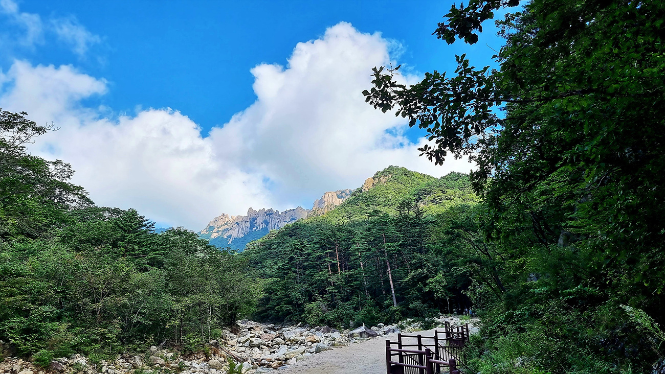 2,4km 앞에 높이 솟구쳐 있는 저 암릉이 울산바위다, 보는것 만으로도 여기는 설악산인듯