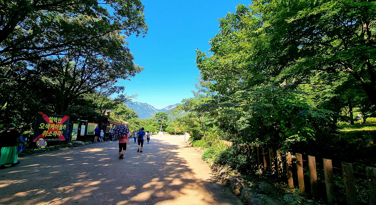 신흥사로 들어가는 입구 설악산 오색케이블카 취소 하라는 1인 시위를 하고 있는 사람도 있고