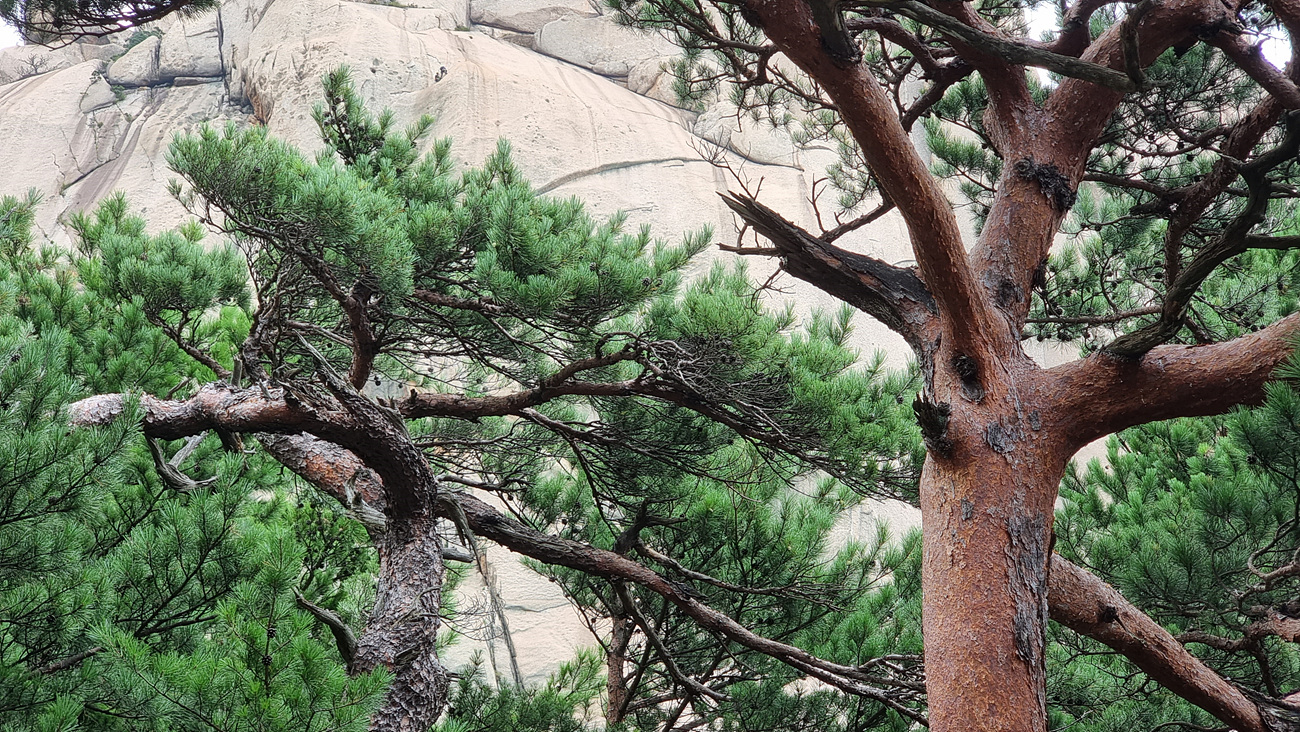 아래서 보는 모습과는 전여 다른 금강송 윗 부분을 볼 수도 있다,