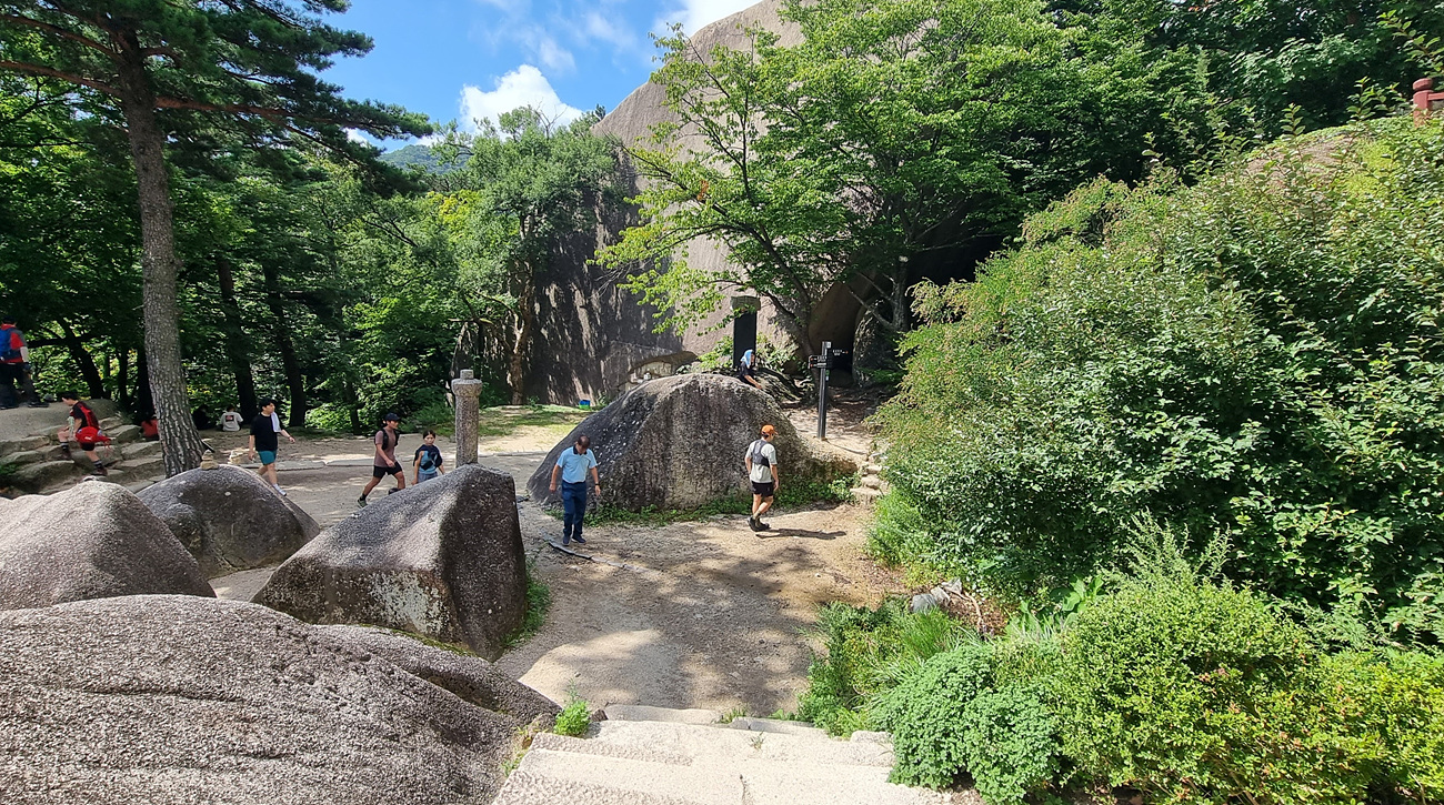 그리고 위쪽을 보면 숲 속에 우뚝 선 울산바위의 거대함에 할 말을 잊게 한다,
