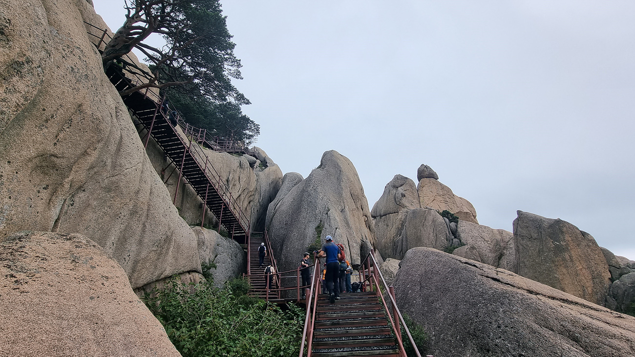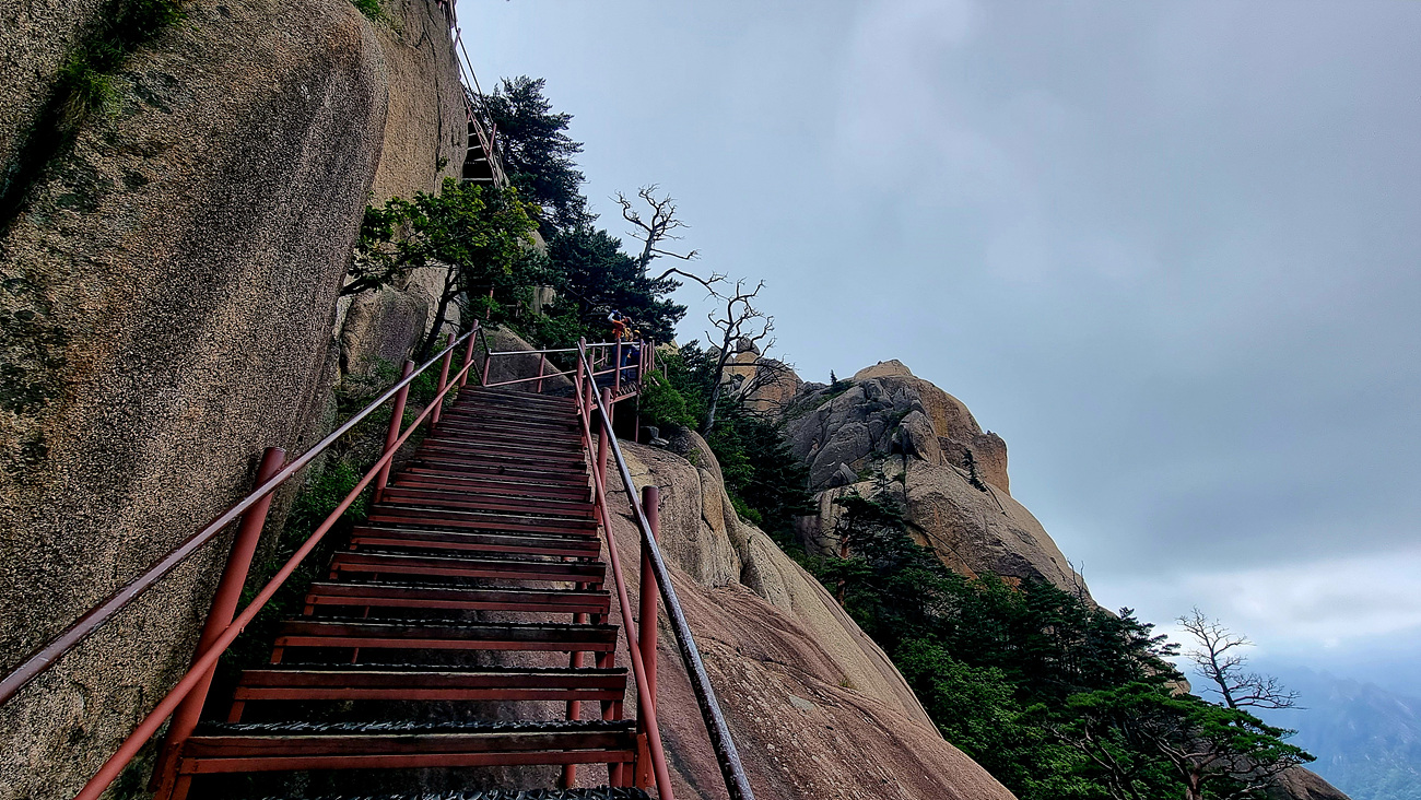수직 바위길이니 계단은 갈지 之자로 설치되어 있지만