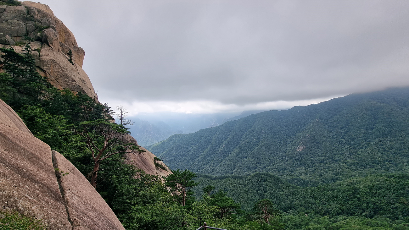 그리고 멀리 내려다 보면 신흥사 앞 계곡이 바짝 다가 오고 그 뒤로는 권금성의 웅장한 자태도 가물거리고
