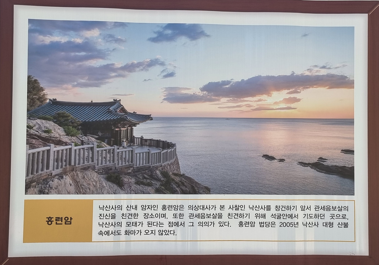 낙산사 산내 암자인 홍련암은 의상대사가 본 사찰인 낙산사를 창건하기 앞서 관세음보살의 진신을 친견한 장소이며 또한 관세음보살을 친견하기 위해 석굴안에서 기도하던 곳으로 낙산사의 모태가 된다는 점에서 그 의의가 있다, 홍련암 법당은 2005년 대형 산불 속에서도 화마가 오지 않았다,