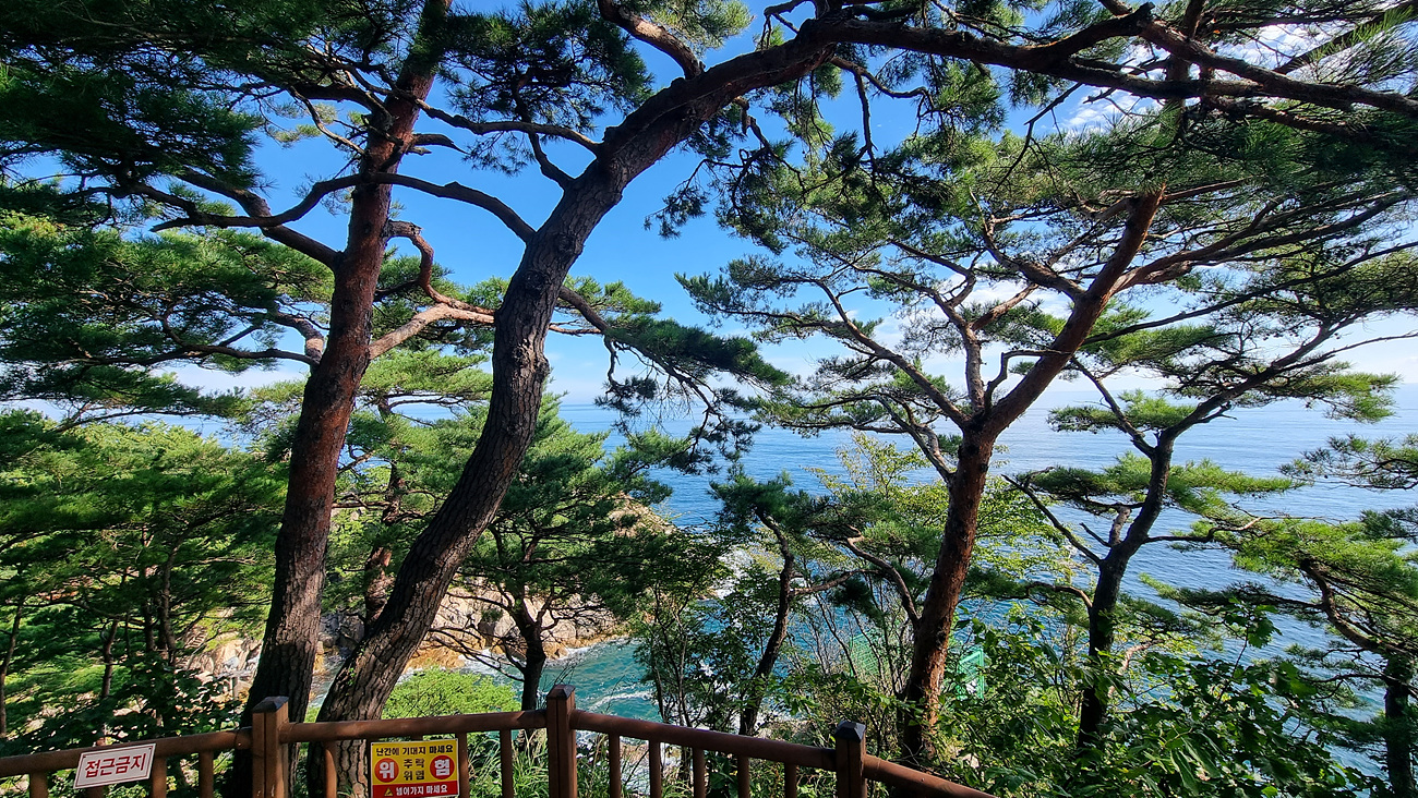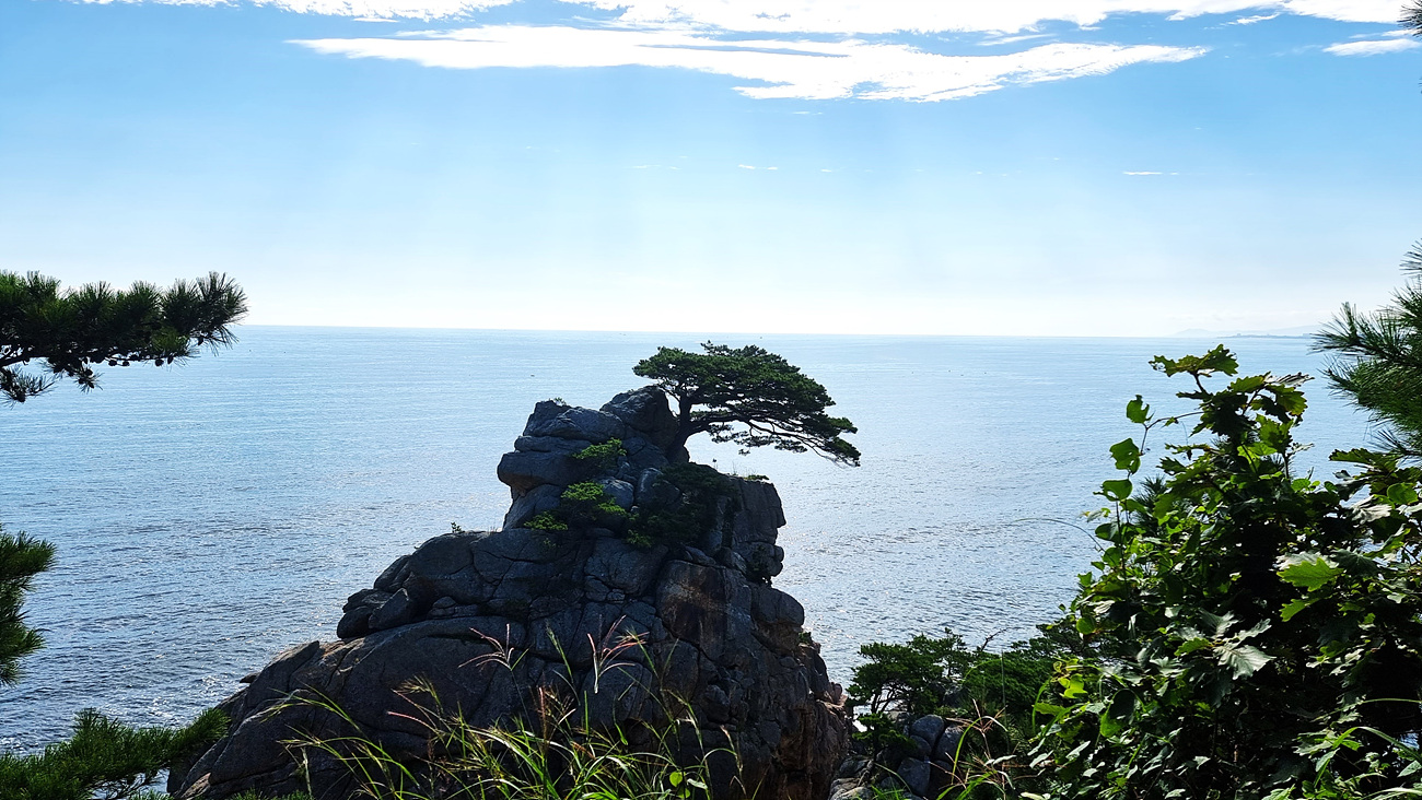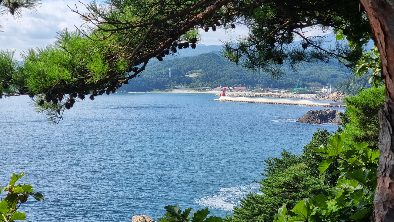 200년 소나무에서 오른쪽으로 해안마을이 있는데 보이는 곳은 기사문항 이다, 2016년에 저곳으로 걸어서 지 왔어니 낮설지는 않다,