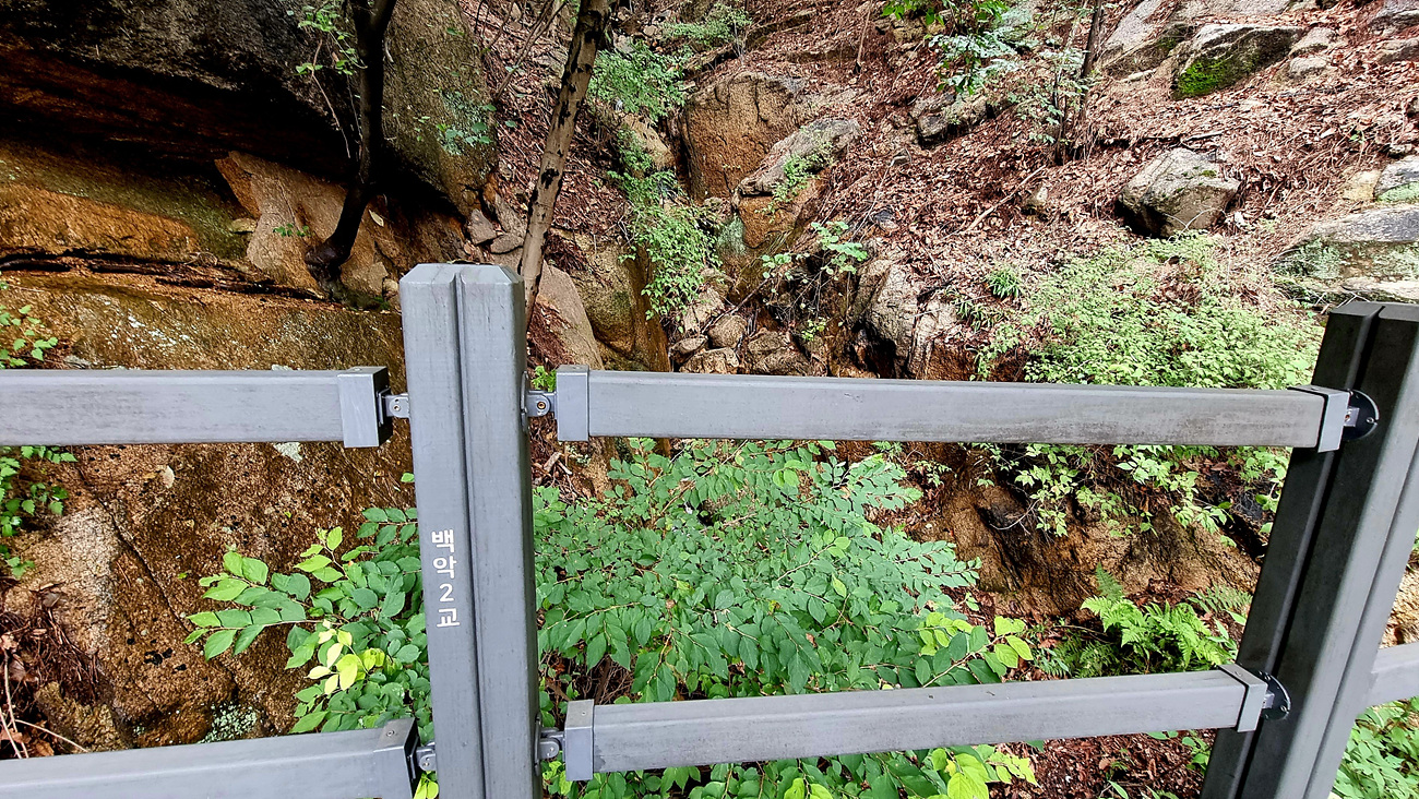 조금만 더 가면 문이 달려 있는 저 안쪽에 백악 능선에서는 유일하게 화장실도 있다,