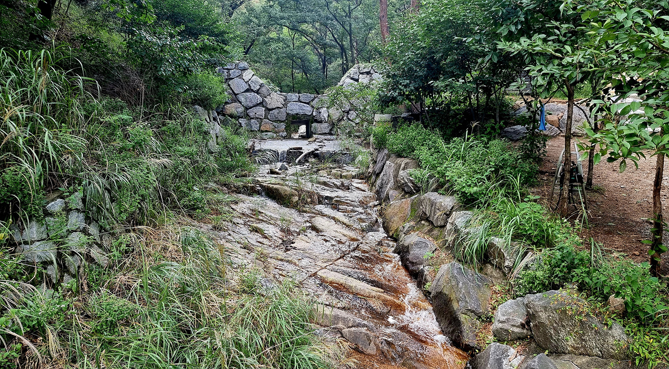 >정자 앞에는 물을 가두어 둘 수 있는 작은 공간의 댐도 있다,