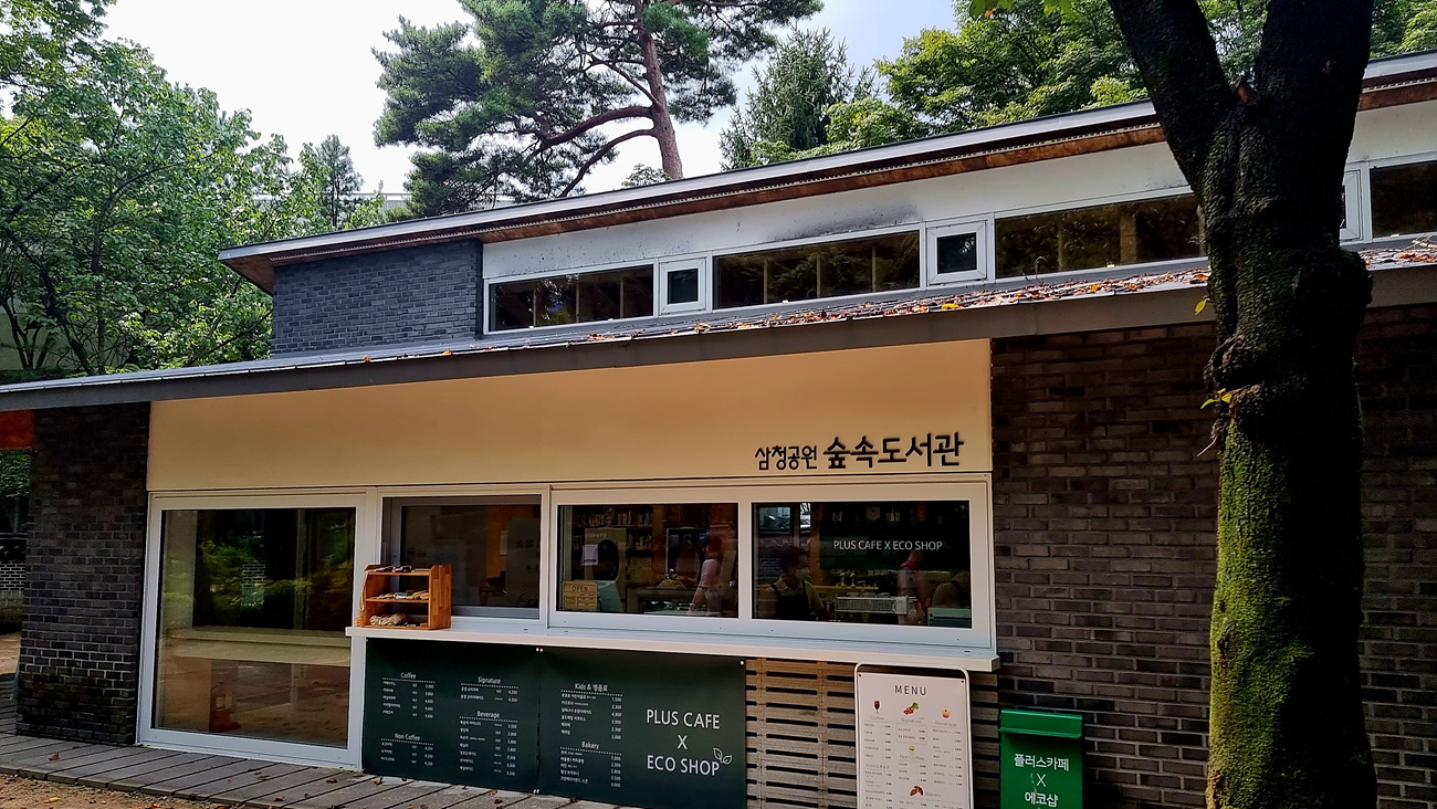 삼청공원 숲속도서관도 있다, 숲속 도서관 입구 아래층에는 카페도 있는 것을 보니 책보다 먹거리가 우선인 도서관인 모양이다,